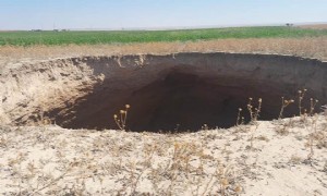 6.09.2023 - 16:22 | Türkiye | KONYA'nın Karapınar ilçesindeki bir tarım arazisinde 20 metre çapında, 60 metre derinliğinde obruk oluştu.