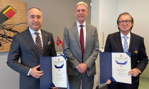 10.12.2021 - 12:37 | Turizm | NORVEÇ Kralı 5. Harald, üstün hizmetleri nedeniyle Touristica ve Diana Travel Yönetim Kurulu Başkanı Burak Tonbul ve turizmci Nüvit Özkan'a Kraliyet Liyakat Nişanı verdi.