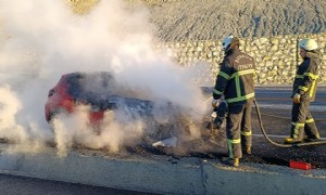 30.12.2025 - 16:27 | BURDUR | BURDUR- Isparta dağ yolunda otomobil yanarak kullanılamaz hale geldi.