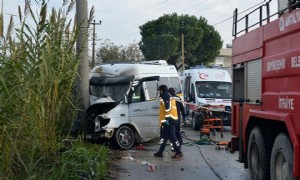 Antalya'da minibüs direğe çarptı: 2 yaralı