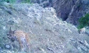 'Ormanın hayaleti' vaşak avda görüntülendi