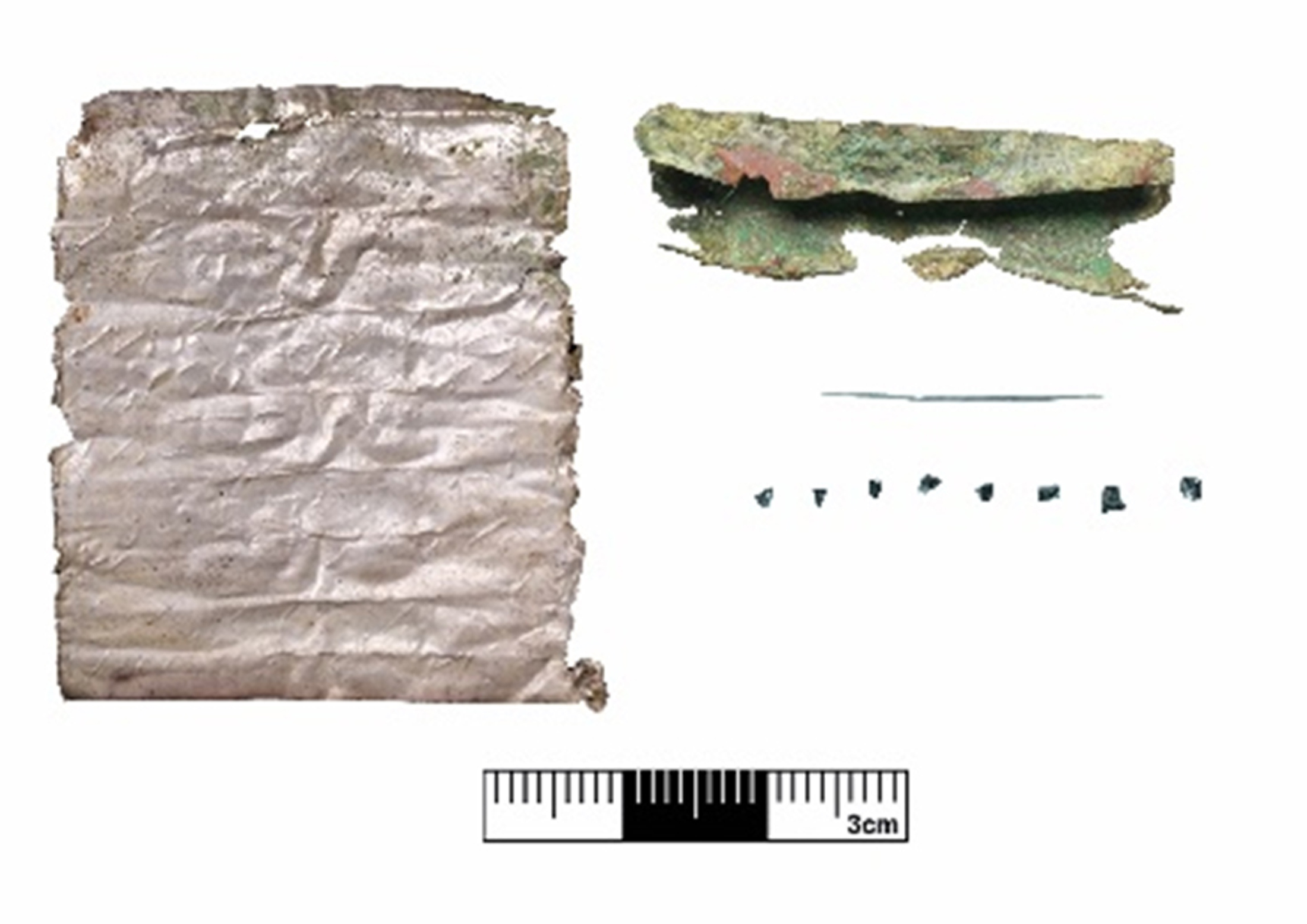 Phaselis'te bronz bir muhafaza içinde, rulo halinde saklanan lamella muska