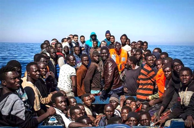 İtalya açıklarında kaçak göçmenlerle dolu bir tekne Açık Deniz Göçmen Yardım İstasyonu yardımını bekliyor.