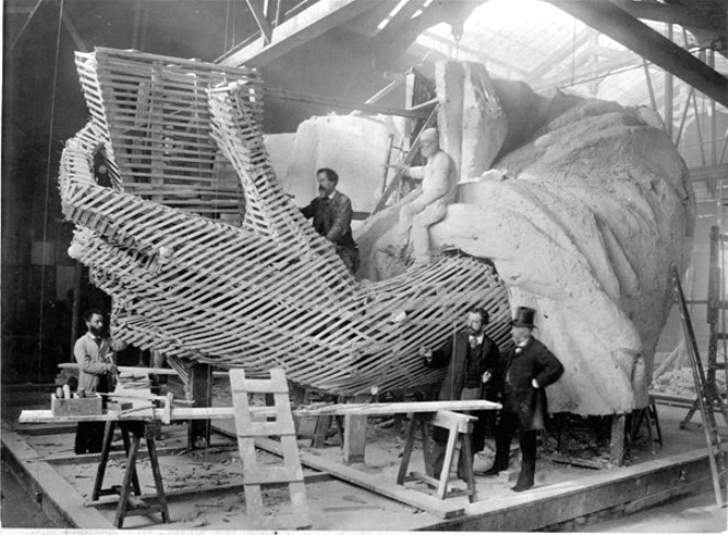 Özgürlük Heykeli'nin sol kolu 1882 yılının kışı, Paris'te yapım aşamasında.