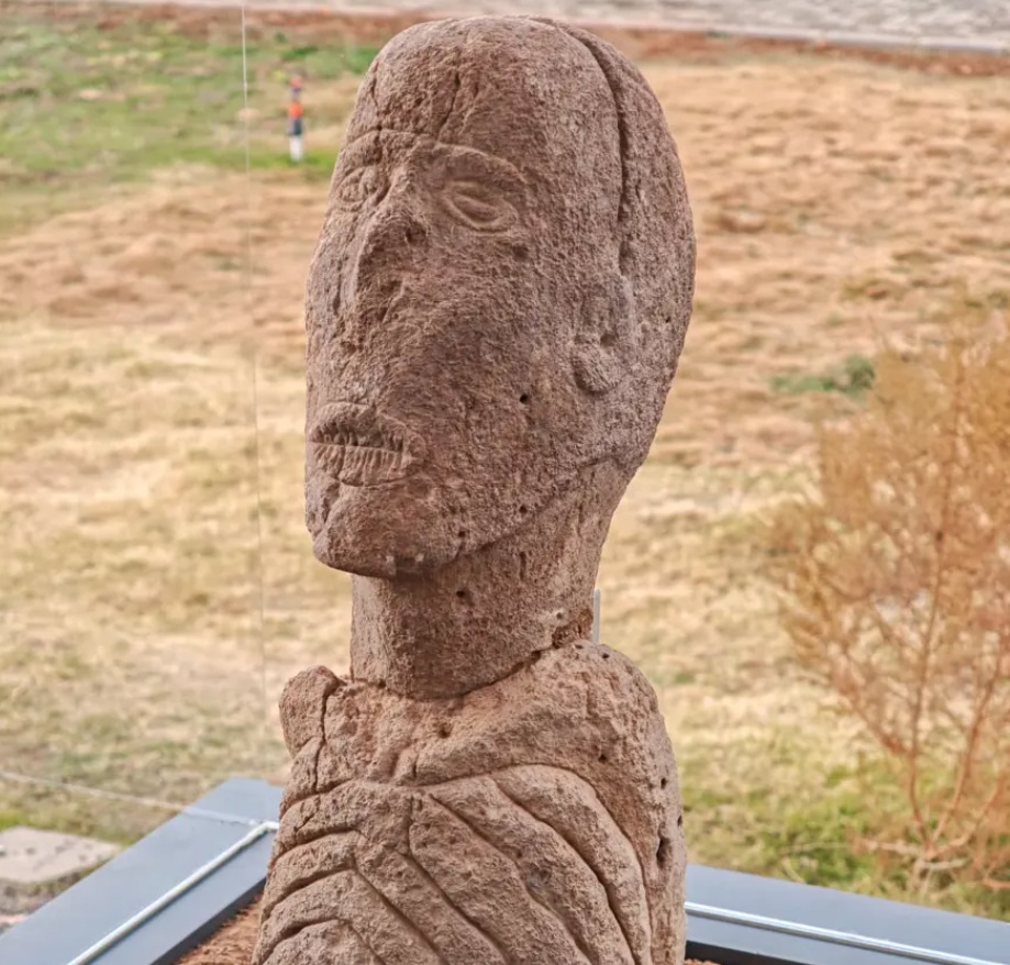 Şanlıurfa'da Doç. Dr. Eylem Özdoğan'ın kazı başkanı olduğu Göbeklitepe'nin de dahil olduğu Taş Tepeler'den biri olan Sayburç'ta, MÖ 8500 yılına tarihlenen heykel, erken yerleşik toplulukların ölüm ritüellerine dair çarpıcı ipuçları taşıyor. 'Çanak Çömleksiz Neolitik Dönem'e ait heykelin kaburgaları oldukça belirgin, ağzı dikilmiş, göz çukurları ise yumuşakça kabuklarıyla doldurulmuş gibi gözüküyor. Ayrıca baş kısmının tepesinde, dönemin yaygın pratiklerinden olduğu düşünülen kafatası yüzme uygulamasına dair izler var.