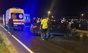 Otomobilin çarptığı özel halk otobüsü devrildi: 5 yaralı