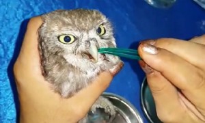 Küçük Horbi cımbızla çiğ et verilerek besleniyor