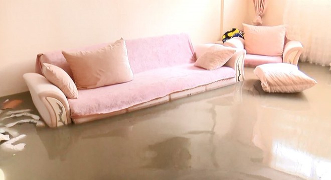 ARNAVUTKÖY'de yağmurun etkisiyle dere taştı, çok sayıda evi su bastı. ...