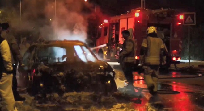 KÜÇÜKÇEKMECE'de seyir halindeki otomobilde yangın çıktı. Alev alev yanan ...
