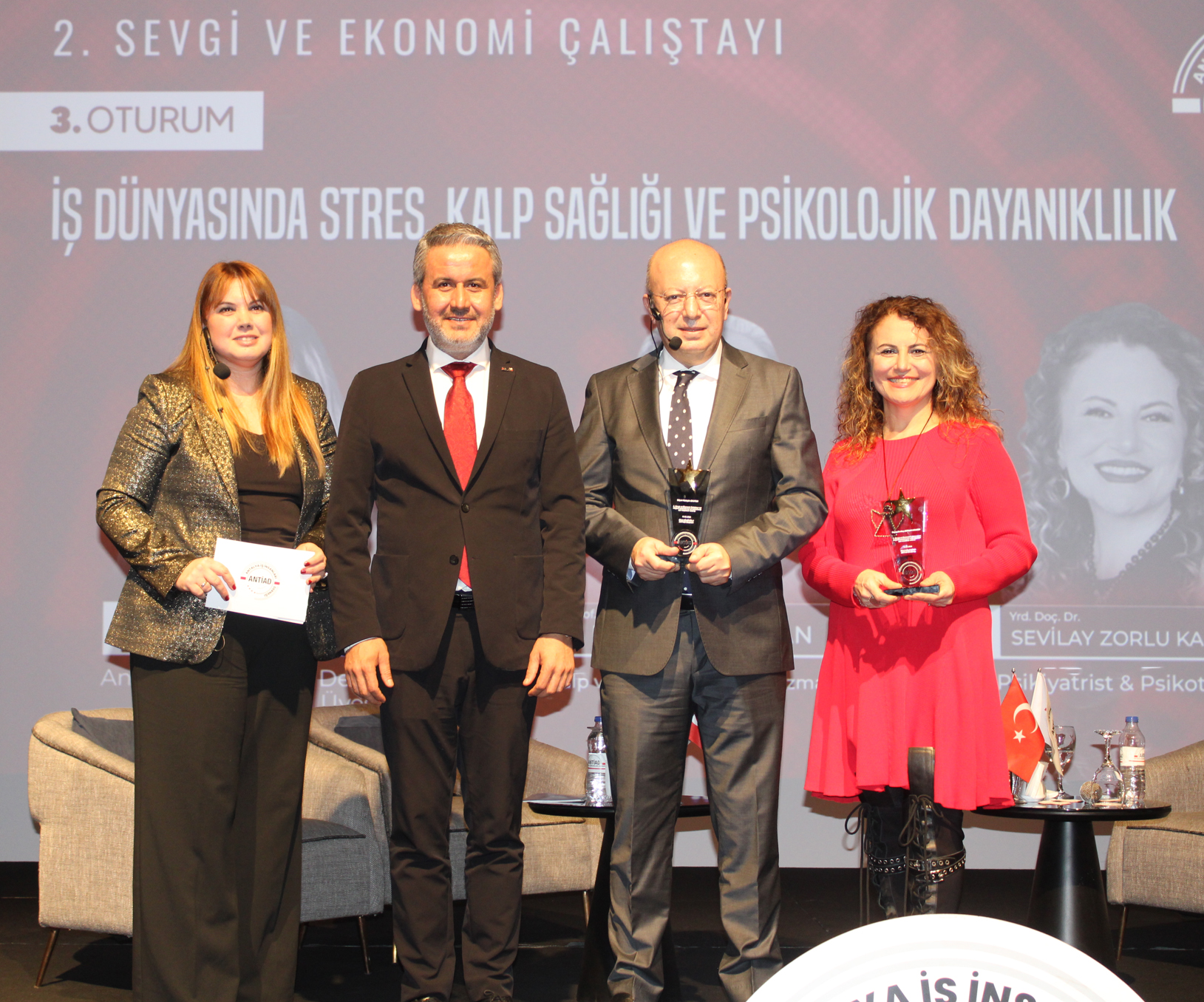 Sevgililer Günü kapsamında düzenlenen çalıştayın üçüncü oturumunda, ANTİAD Yönetim Kurulu Üyesi Melis Metin moderatörlüğünde, kalp ve Damar Cerrahisi hekimi Prof. Dr. Hüseyin Okutan; Psikiyatrist, Psikoterapist Yrd. Doç. Dr. Sevilay Zorlu Karagür, üyelere bilgi aktarımında bulundu. Kalp ve damar sağlığı alanındaki çalışmalarıyla öne çıkan Prof. Dr. Hüseyin Okutan, yoğun iş temposunun kalp sağlığı üzerindeki etkilerini bilimsel veriler ve klinik deneyimleri ışığında üyelerle paylaştı. Prof. Dr. Okutan, iş yaşamında sürdürülebilir başarı için kalp sağlığını korumanın önemine dikkati çekti. Psikiyatri ve psikoterapi alanındaki uzmanlığıyla katkı sunan Yard. Doç. Dr. Sevilay Zorlu Karagür ise stres yönetimi, psikolojik dayanıklılık ve iş insanlarında tükenmişlik sendromu konularında perspektifler sundu. Yrd. Doç. Dr. Karagür, sağlıklı zihin yapısının, hem yaşam kalitesi hem de iş performansı üzerindeki belirleyici rolünü vurguladı.
