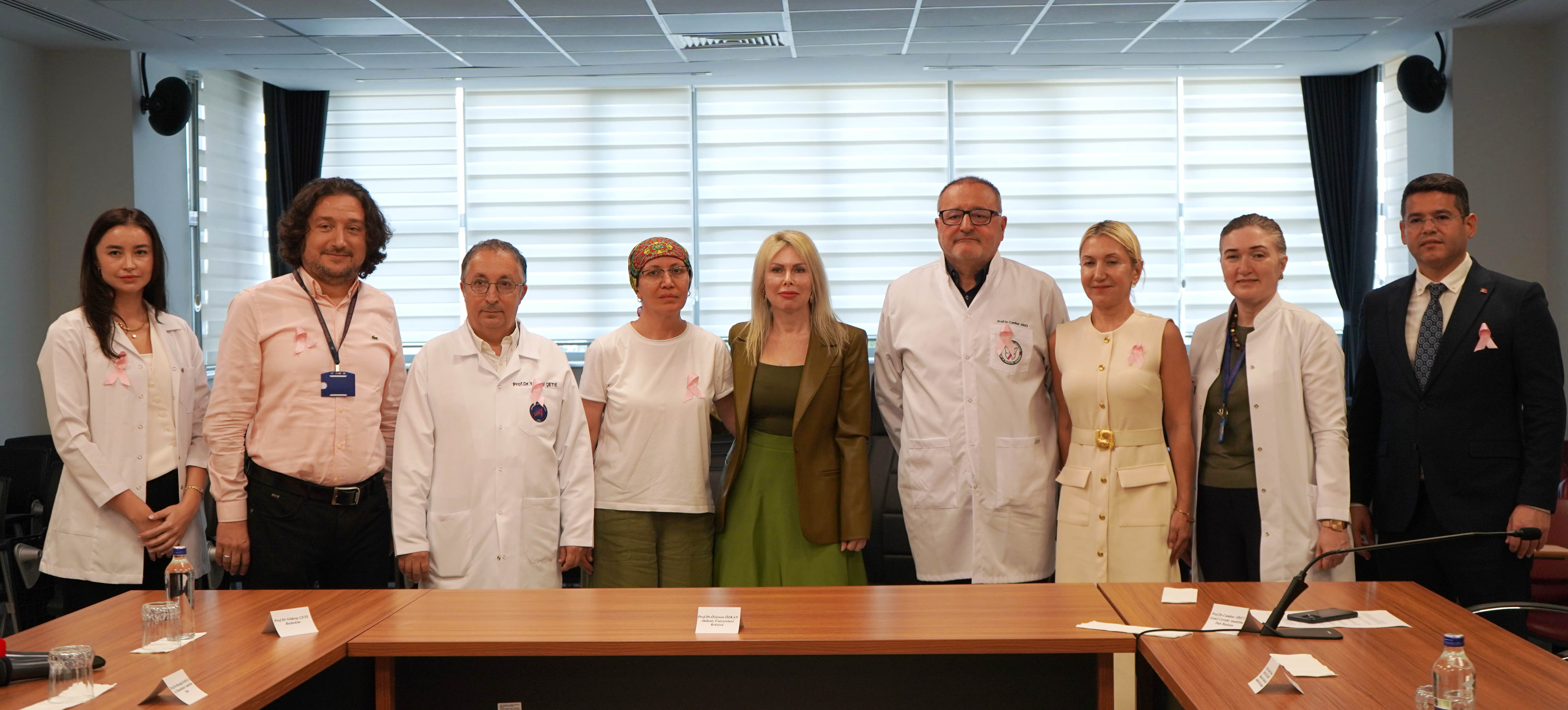 AÜ Hastanesi tarafından 1- 31 Ekim Dünya Meme Kanseri Farkındalık Ayı kapsamında basın toplantısı düzenlendi. Toplantıya AÜ Rektörü Prof. Dr. Özlenen Özkan, Hastane Başhekimi Prof. Dr. Yıldıray Çete, Genel Cerrahi Anabilim Dalı Başkanı Prof. Dr. Cumhur Arıcı, Tıbbi Onkoloji Bilim Dalı Öğretim Üyesi Prof. Dr. Mustafa Karaca, Radyasyon Onkolojisi Anabilim Dalı Başkanı Prof. Dr. Aylin Fidan Korcum Şahin, Tıbbi Onkoloji Bilim Dalı Öğretim Üyesi Prof. Dr. Sema Sezgin Göksu, Genel Cerrahi Anabilim Dalı Öğretim Üyesi Doç. Dr. Veli Vural ve Radyoloji Anabilim Dalından Dr. İmren Düzen katıldı.