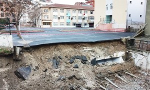 Metruk binanın çatı katından düşen moloz sürücüyü yaraladı