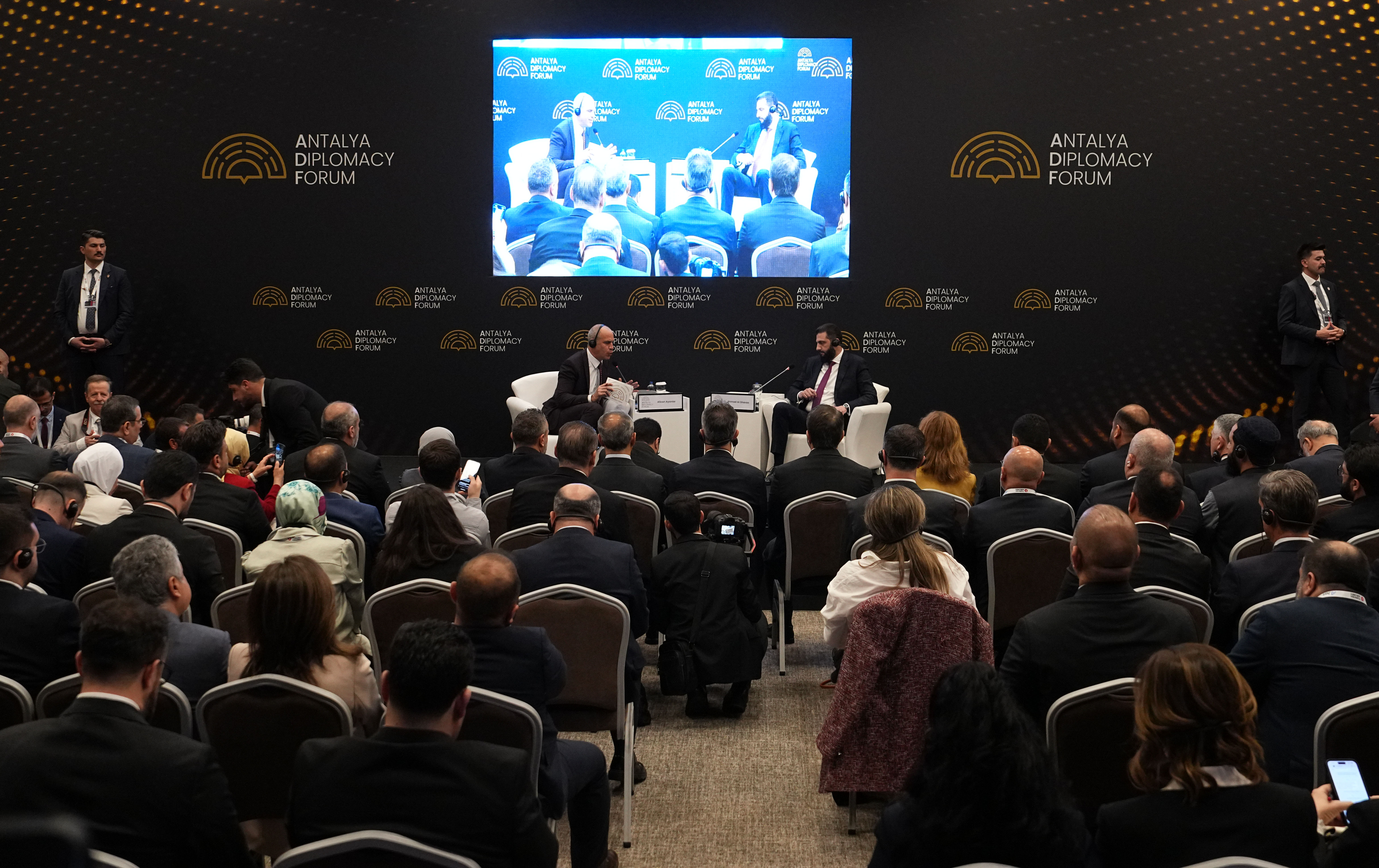 Cumhurbaşkanı Recep Tayyip Erdoğan'ın himayesinde, Dışişleri Bakanlığı'nın ev sahipliğinde düzenlenen Antalya Diplomasi Forumu (ADF2026) başladı. Suriye Arap Cumhuriyeti Cumhurbaşkanı Ahmed Şara da forumda konuşmacı olarak yer aldı. Moderatörlüğünü Alican Ayanlar'ın yaptığı programda Şara, soruları yanıtladı.