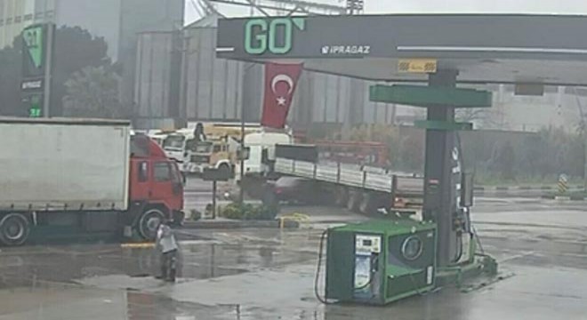 Akaryakıt istasyonundan dönüş yapan TIR'a çarptı