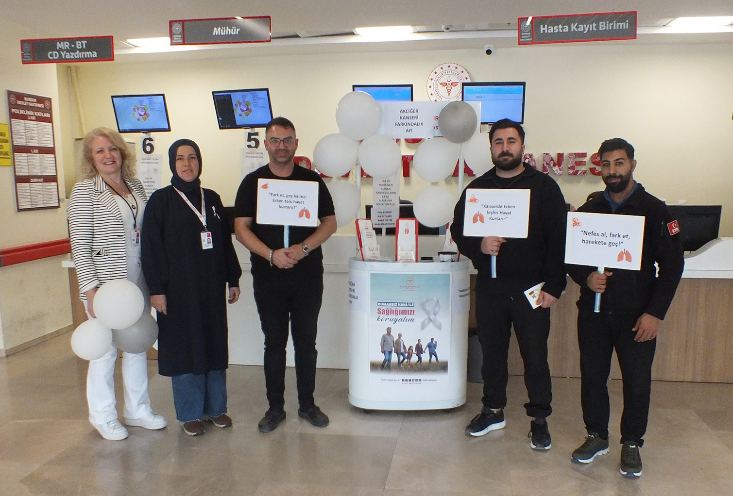 BURDUR Devlet Hastanesi'nde Akciğer Kanseri Farkındalık Ayı kapsamında toplumda erken tanı bilincini artırmak ve sigara kullanımının yol açtığı sağlık risklerine dikkati çekmek amacıyla bilgilendirme standı kuruldu.