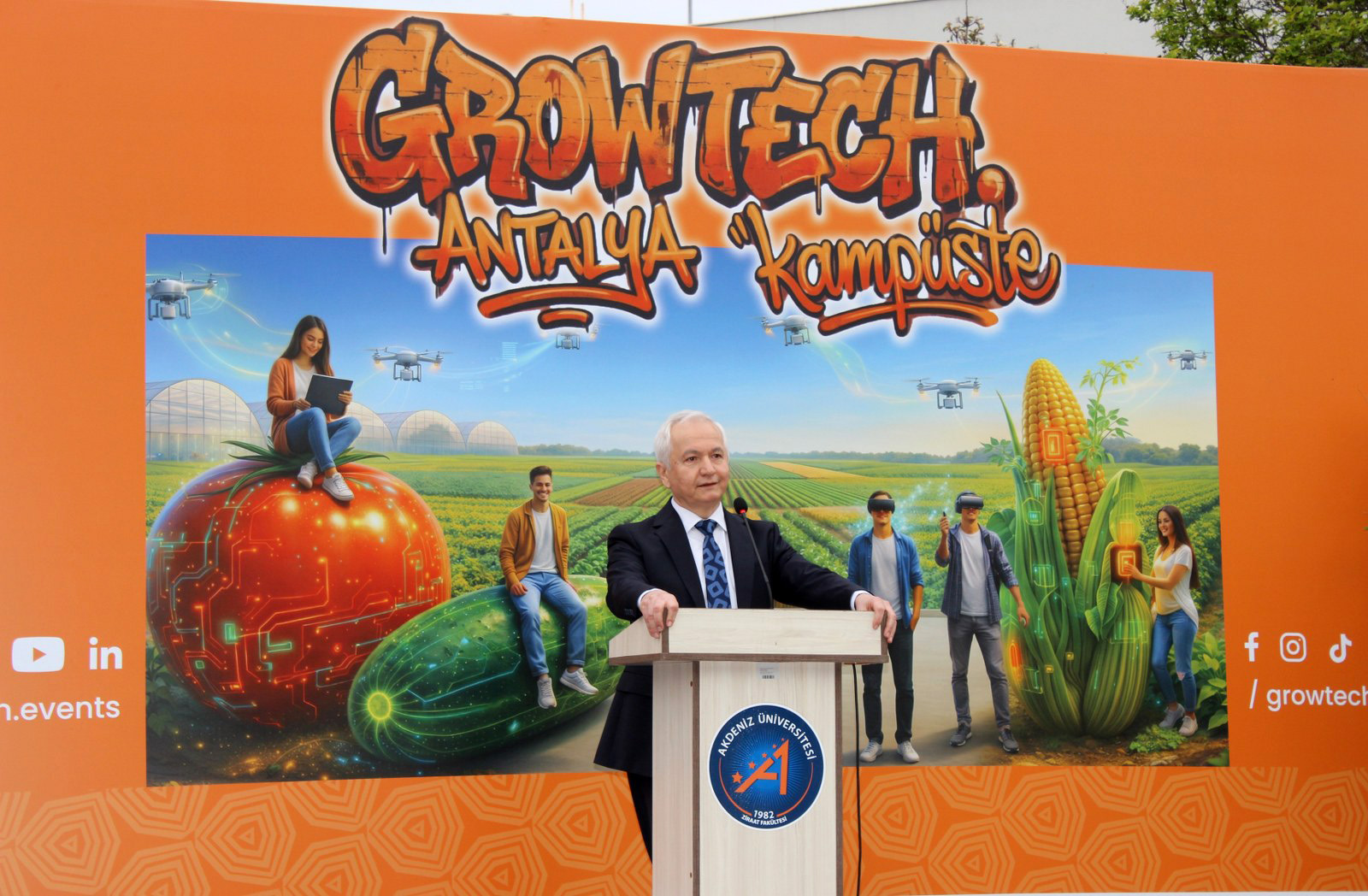 Programın açılış konuşmalarını gerçekleştiren Ziraat Fakültesi Dekanı Prof. Dr. Mustafa Erkan, "Growtech bildiğiniz gibi dünyanın en büyük örtü altı fuar sektörlerinin başında geliyor. Her yıl Antalya ve dünyanın değişik ülkelerinde fuar organizasyonu yapıyor. Biz de 4 yıl önce fakültemizde 7+1 uygulamalı eğitim sistemine geçtik. Bu kapsamda özellikle öğrencilerimize staj yeri bulmalarını sağlamak amacıyla bu etkinliği hayata geçirdik. Şu anda son sınıf öğrencilerimizden 225 öğrencimiz Antalya'daki 124 tarım sektöründe bir yarıyıl stajlarına devam ediyorlar. Bugün özellikle 3'üncü sınıf öğrencilerimiz açısından son derece önemli. Çünkü onlar da 2027 Şubat ayında yine 7+1 uygulamalı eğitim sisteminde stajlarına başlayacaklar" dedi.