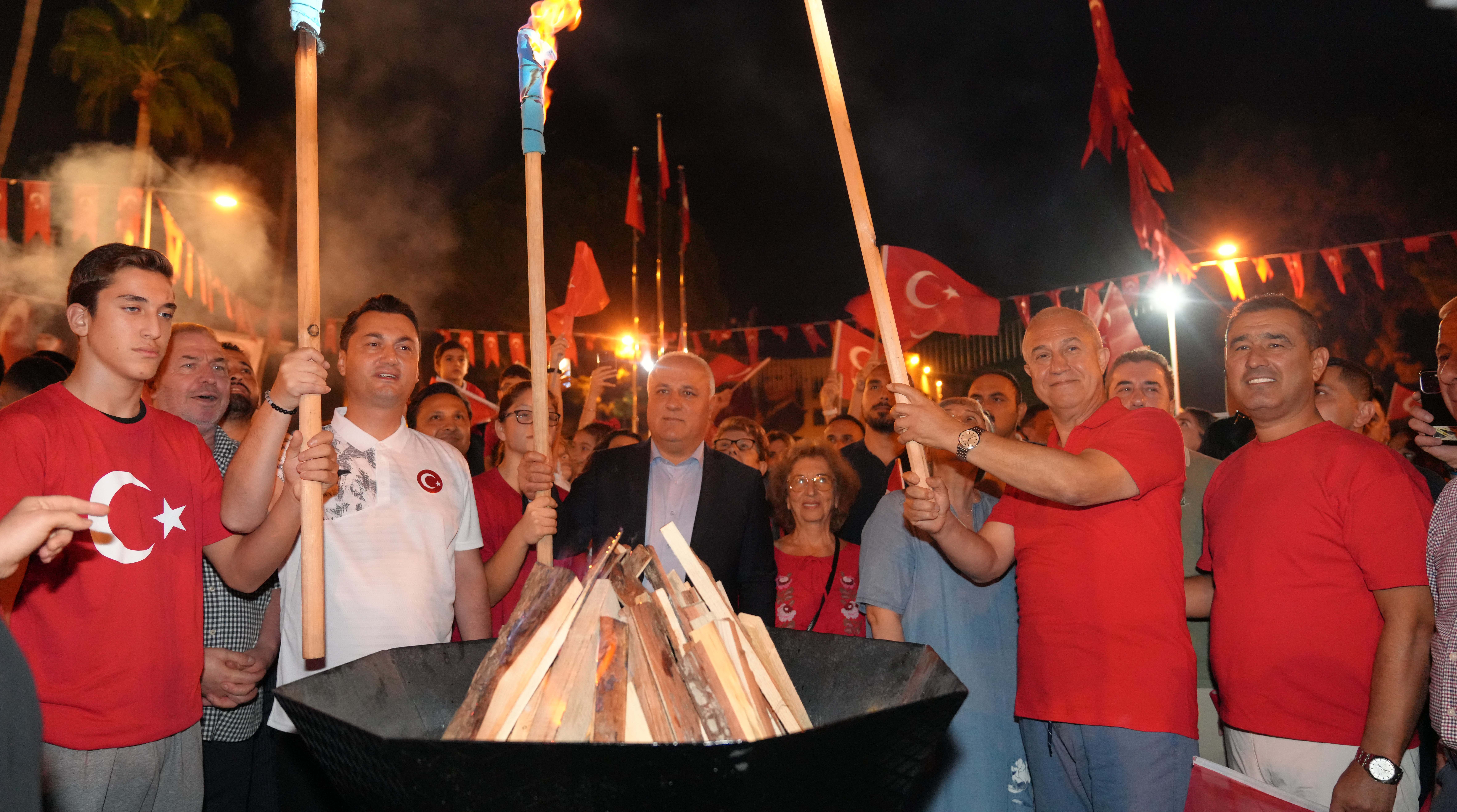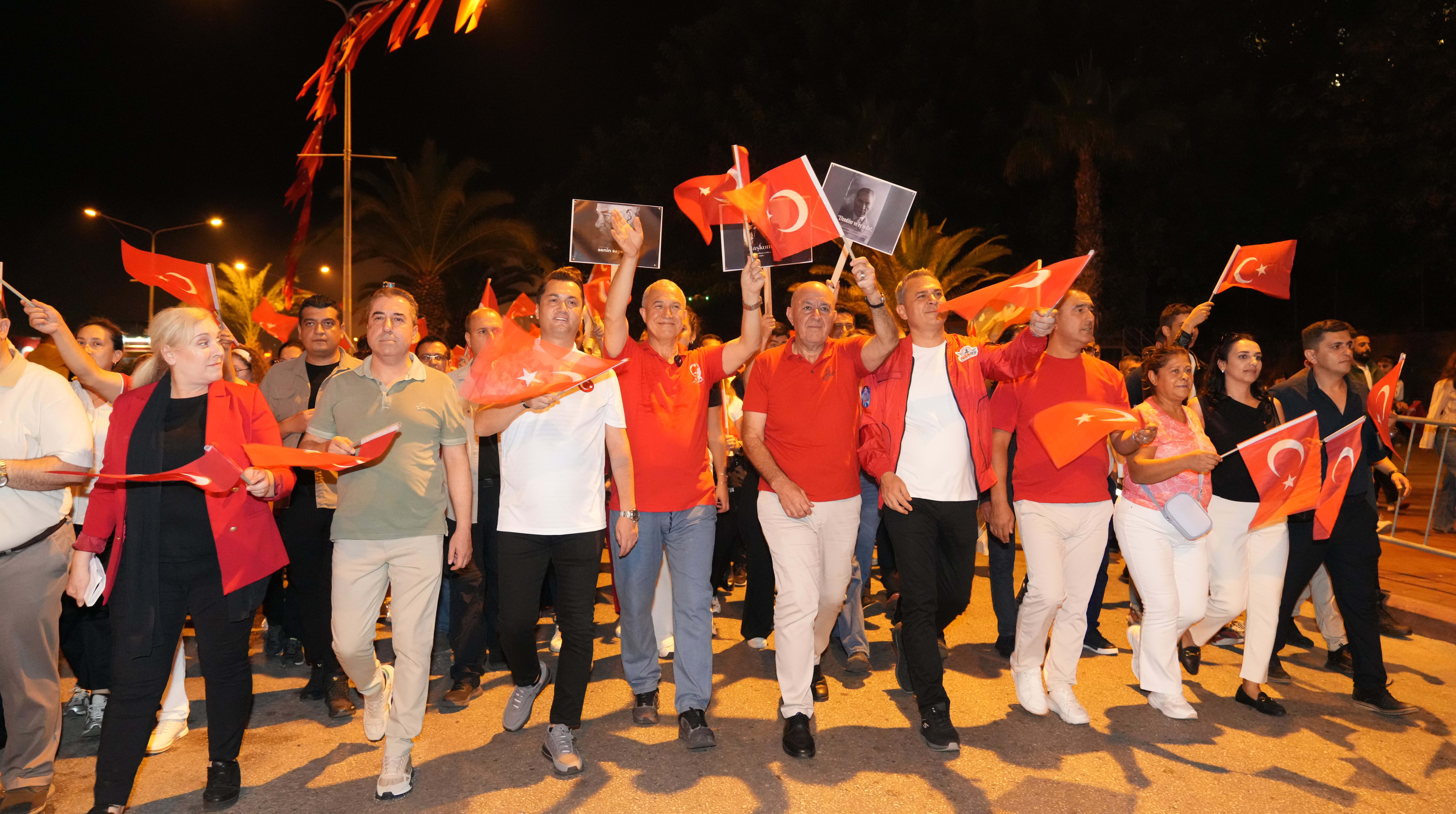Alanya'da 29 Ekim Cumhuriyet Bayramı kutlamaları, Atatürk Anıtı önünde başladı. Alanya Belediyesi ve Alanya Kent Konseyi iş birliğinde düzenlenen Fener Alayı Yürüyüşü, Kaymakam Şakir Öner Öztürk, Belediye Başkanı Osman Tarık Özçelik, ALTSO Başkanı Eray Erdem, Alanya Kent Konseyi Başkanı Nurhan Özcan ve siyasi parti temsilcilerinin Cumhuriyet meşalesini yakmasıyla başladı. Binlerce vatandaş ellerinde Türk bayraklarıyla marşlar eşliğinde belirlenen güzergâhta yürüyüşe geçti. Renkli görüntülere sahne olan Fener Alayı Yürüyüşü, Atatürk Caddesi, Bostancıpınarı Caddesi ve İskele Caddesi boyunca sürdü. Çok sayıda vatandaş ise yürüyüşe balkonlarından ve iş yerlerinden destek verdi.