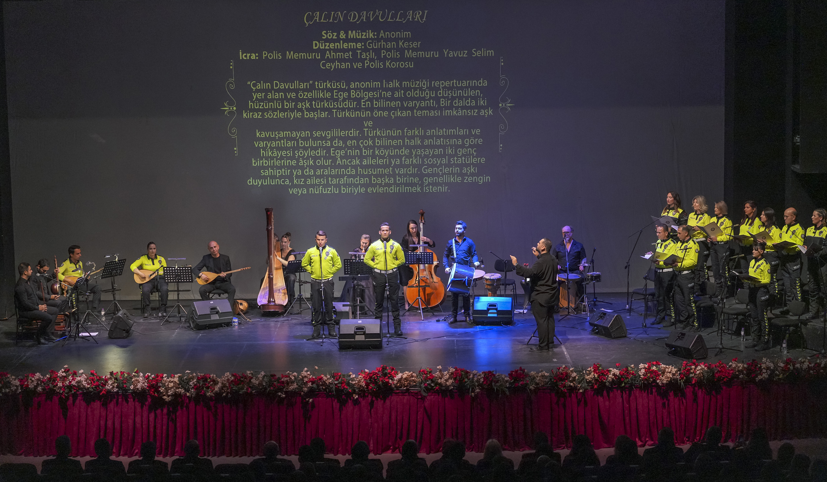 Antalya Devlet Opera ve Balesi sanatçıları ile Antalya İl Emniyet Müdürlüğü bünyesinde görev yapan Polis Korosu'nun birlikte sahne aldığı konserde; doğunun köklü ezgileri, batının çok sesli armonileriyle iç içe geçerek izleyicilere etkileyici bir müzikal deneyim sundu.