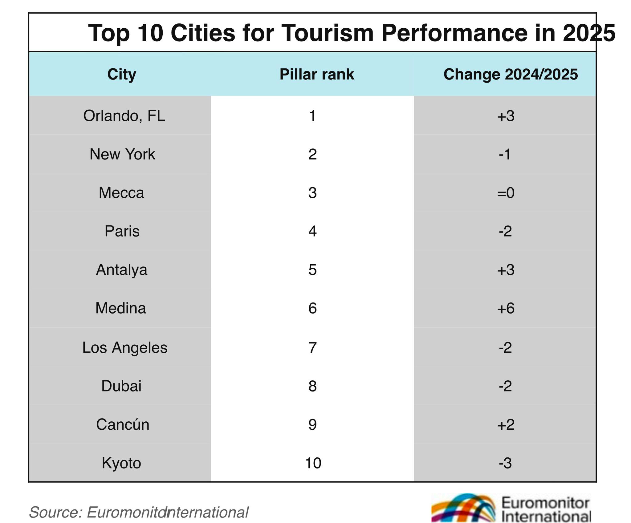 Uluslararası araştırma şirketi Euromonitor, her yıl olduğu gibi bu yıl da 'Dünyanın En Çok Ziyaret Edilen 10 Şehri' listesiyle birlikte 'Dünyanın En İyi 10 Turizm Destinasyonu' listesini açıkladı. İki listenin de Türkiye açısından önemine dikkat çeken Antalya Kent Konseyi Turizm Çalışma Grubu Başkanı Recep Yavuz, “'Dünyanın En Çok Ziyaret Edilen 10 Şehri' listesinde Türkiye'den 2 şehir yer alınca, haber Türk kamuoyunun ilgisini daha da çok çekti. Listede 5'inci sıradaki İstanbul dünya genelinde en önemli şehir destinasyonlarından biri. Listede 8'inci Antalya, resort turizm ve tatil destinasyonu olarak en çok ziyaretçi alan şehir. Listede aynı ülkeden 2 şehir olan tek ülke Türkiye. Dünya genelinde 100 şehrin verileri üzerinden çalışma yapıldığını göz önüne alırsak, bu sayısal anlamda önemli bir başarı" dedi.