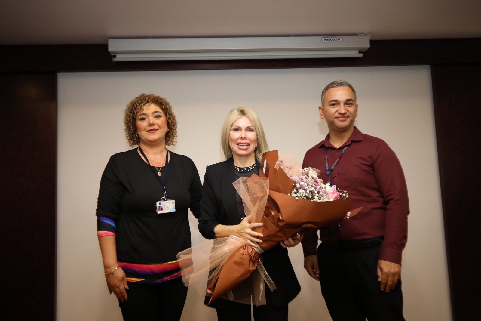 Konuşmaların ardından çalışanlar Rektör Özkan'a çiçek takdim etti. Toplantı fotoğraf çekimiyle sona erdi.