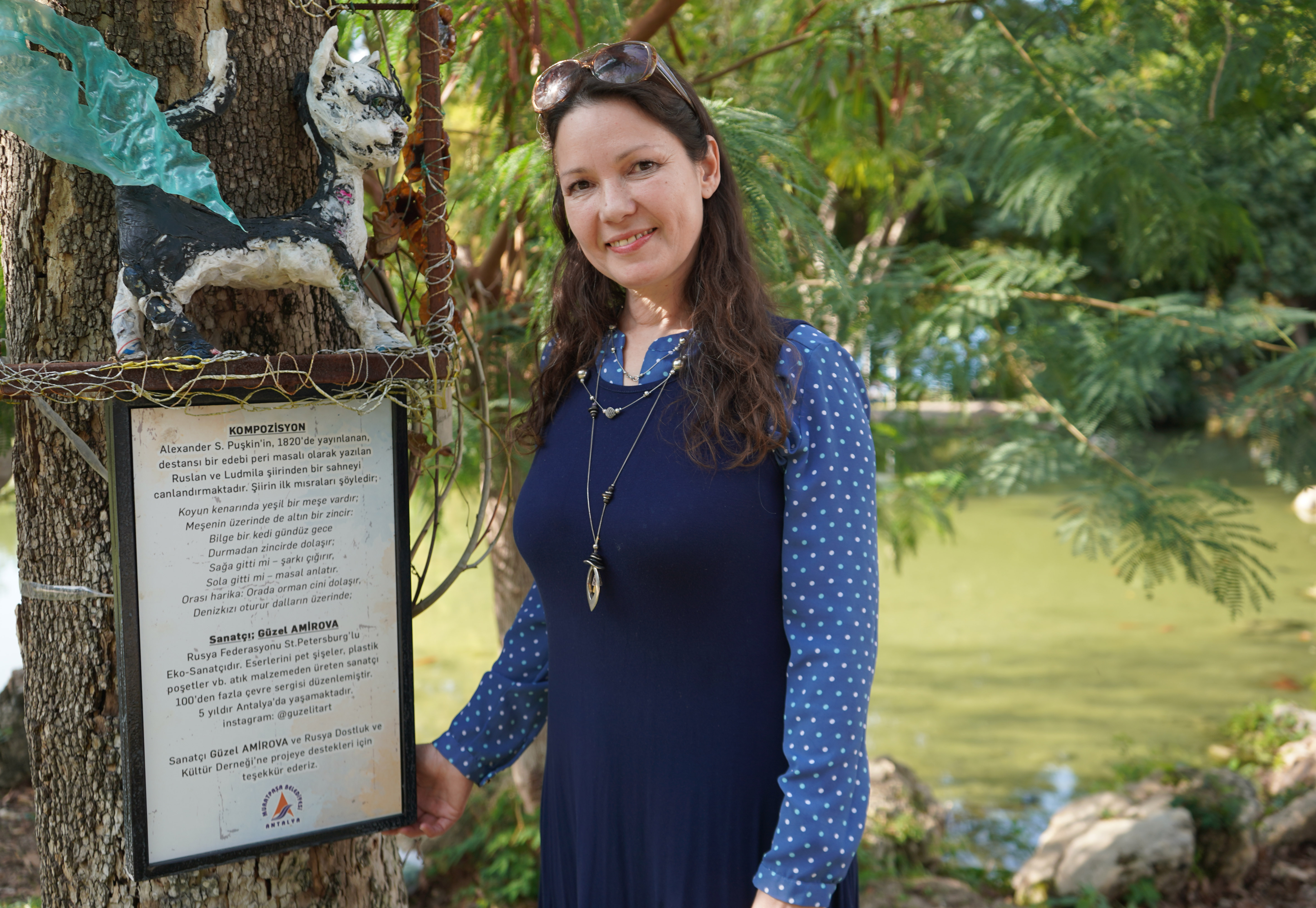 Antalya'da çevre farkındalığı oluşturmayı hedeflediğini aktaran Amirova, yerli ve yabancı gönüllülerle birlikte poşet ve pet şişeleri toplayarak doğaya katkıda bulunduğunu belirtti. Güzel Amirova, “Her şey bir fikirle başlıyor. Benim fikrim de atıkları güzelliğe çevirmekti" diye konuştu.