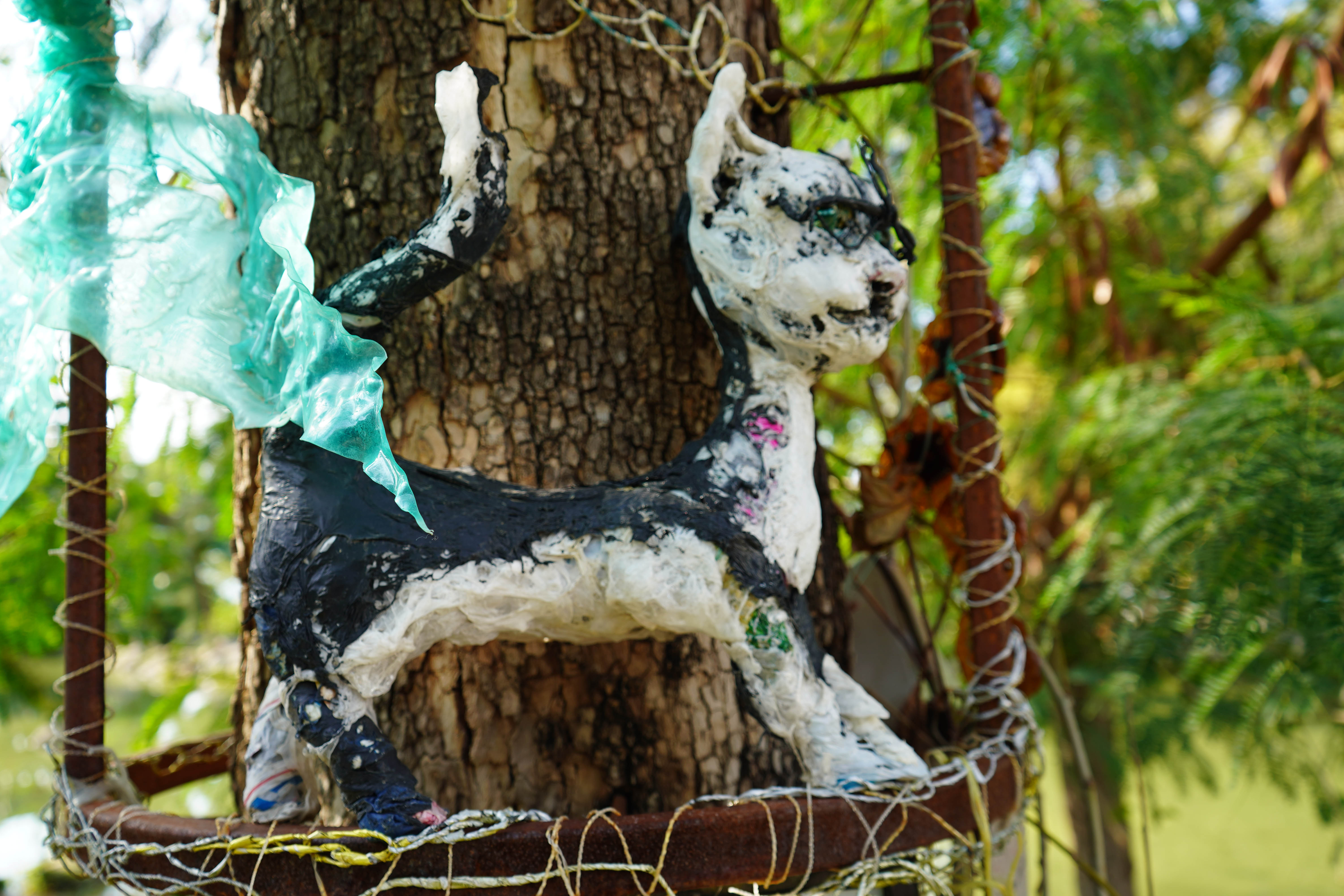 Geri dönüşüm atıklarından yeni oluşturduğu heykeli de anlatan Amirova, “Altın renkli salyangoz figürümü bulaşık deterjanı şişelerinden yaptım. Çünkü artık her şeyin güzel bir yanı var" ifadelerini kullandı.
