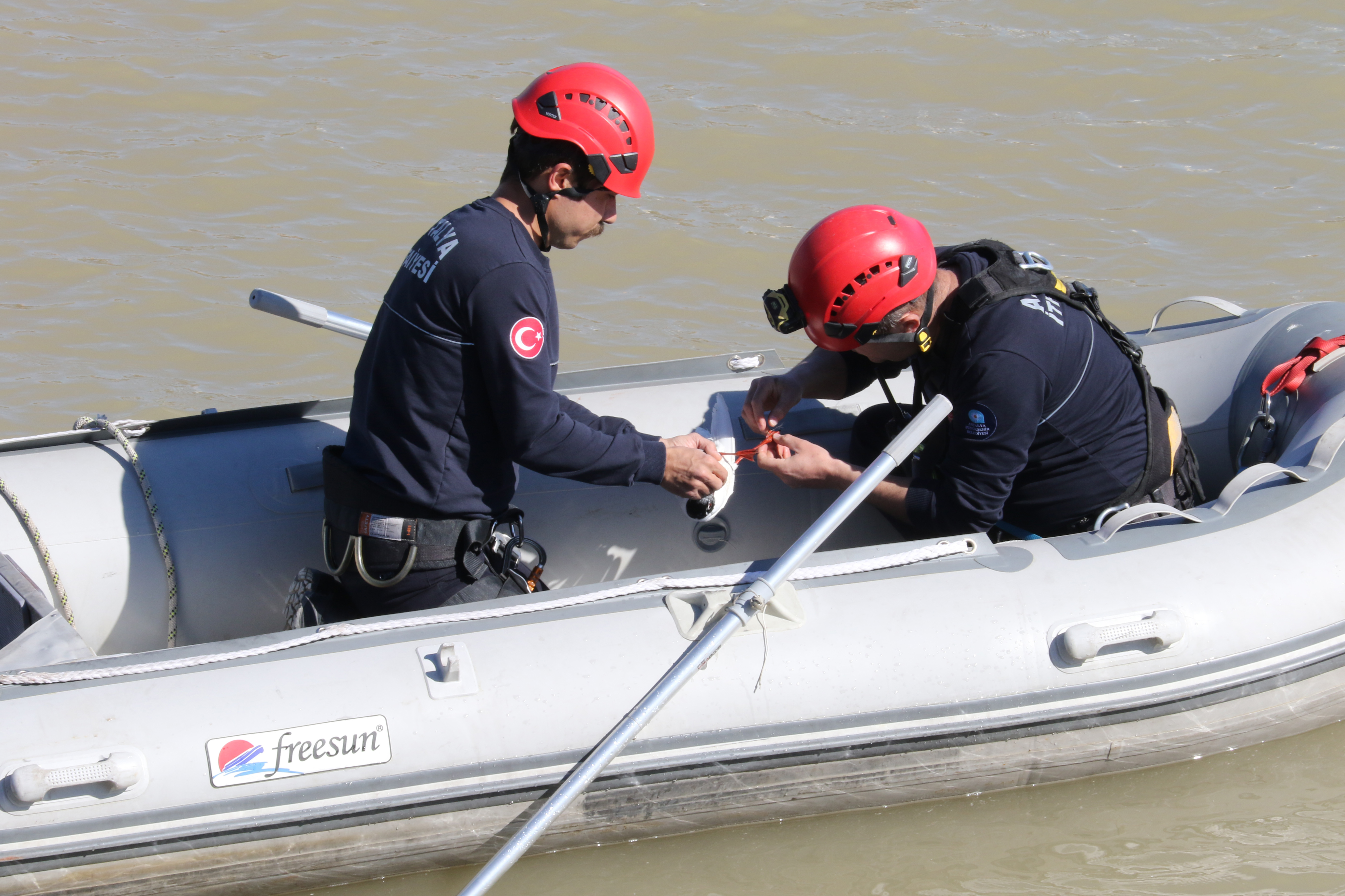 Konyaaltı ilçesi Gürsu Mahallesi'nde bulunan Boğaçayı'nda kanatlarını çırpan bir martının uzun süre aynı noktada kaldığını fark eden Toprak Sevim, kuşun ayağının misinaya dolandığın gördü. Martının kurtulmak için çırpındığını gören Sevim, durumu 112 Acil Çağrı Merkezi'ne bildirdi. İhbarla adrese Antalya Büyükşehir Belediyesi İtfaiye Daire Başkanlığı'na bağlı ekip sevk edildi. Kısa sürede bölgeye gelen ekip, çay içerisinde mahsur kalan martıya ulaşabilmek için botu suya indirdi. Botla martının bulunduğu noktaya yaklaşan itfaiye erleri, dikkatli bir çalışma gerçekleştirdi. Bir itfaiye eri, martının ayağına dolanan misinanın su içerisindeki bir hortuma takıldığını belirledi. Martının zarar görmemesi için kontrollü şekilde müdahale eden itfaiye eri, dolanan misinayı yanına aldığı makasla keserek hayvanı kurtardı. Ayağındaki misina tamamen kesilen martı, yaşam alanına bırakıldı.
