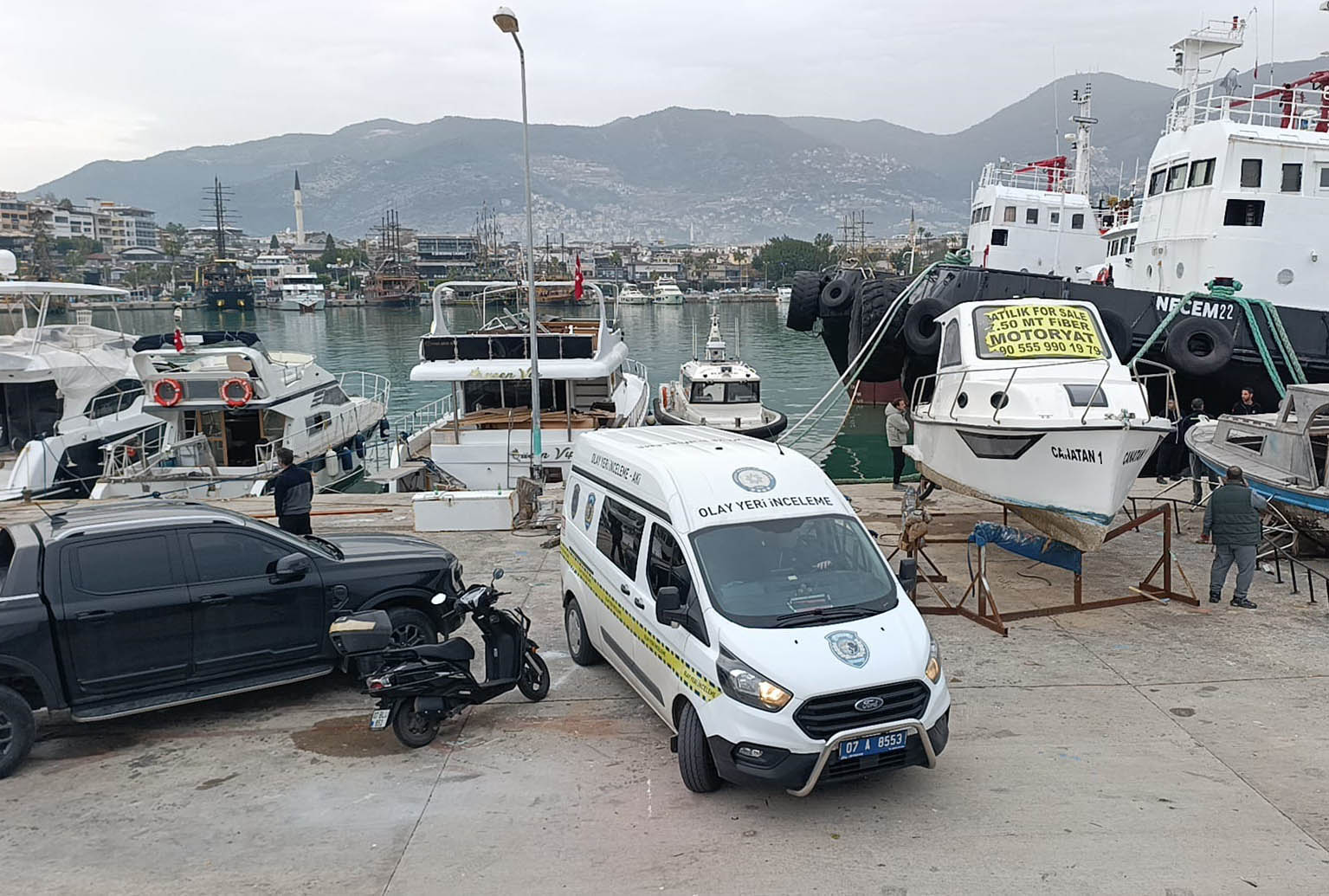 Olay, dün saat 16.00 sıralarında Çarı Mahallesi'ndeki Alanya Balıkçı Barınağı'nda meydana geldi. Denizde erkek cesedi görenler 112 Acil Çağrı Merkezi'ne ihbarda bulundu. Bunun üzerine Alanya Sahil Güvenlik Komutanlığı'na bağlı ekipler ile polis bölgeye sevk edildi. Ekipler yaptıkları kontrolde cansız bedenin barınaktaki römorkörde çalışan Cem Türkoğlu'na ait olduğunu belirledi. Cumhuriyet savcısının incelemesinin ardından Cem Türkoğlu'nun cenazesi kesin ölüm nedeninin belirlenmesi amacıyla Alanya Adli Tıp Kurumu Morgu'na kaldırıldı. Olayla ilgili soruşturma başlatıldı.