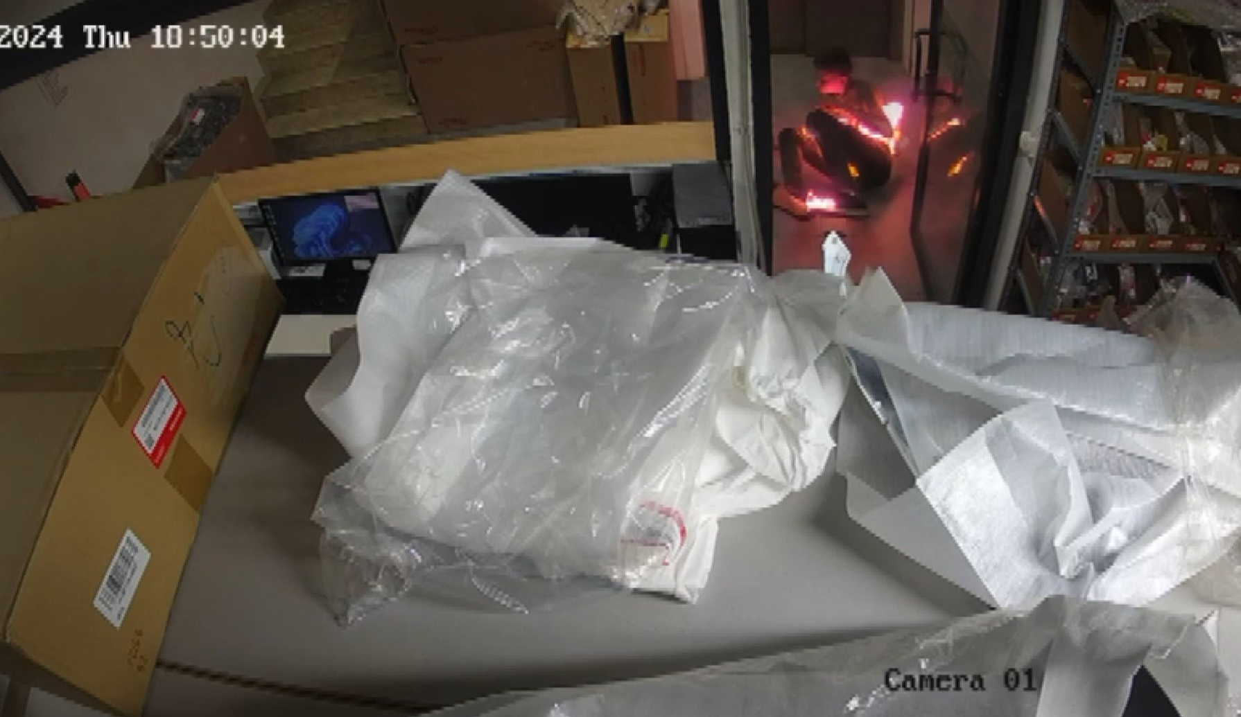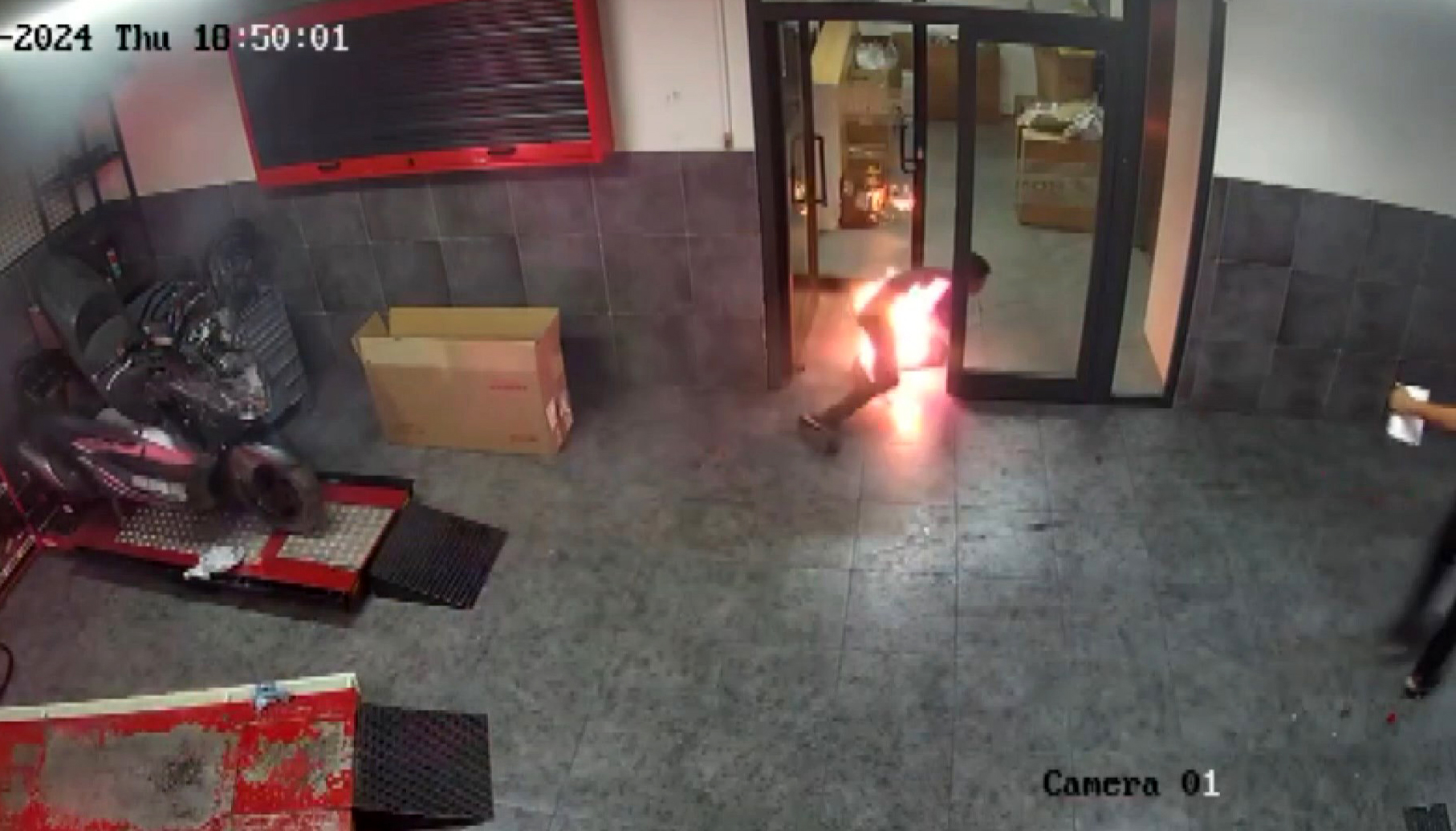 Bu arada olay, güvenlik kamerasına da yansıdı. Görüntülerde, A.K.K.'nin kameraların görmediği alanda E.A.'nın bulunduğu yağ temizleme odasına girdiği, yaklaşık 20 saniye sonra alevlerin aniden parladığı görüldü. A.K.K., ayağına sıçrayan ateşle koşarak uzaklaşıp yangını söndürürken, E.A.'nın ise vücudunu saran alevlerle çığlık atarak koştuğu ve kendini yere atıp yuvarlanarak kurtulmaya çalıştığı anlar kameraya yansıdı. İş yerindeki diğer çalışanların yangın tüpleriyle müdahalesi sonucu hem E.A.'nın üzerindeki ateş hem de olayın yaşandığı odadaki yangının söndürüldüğü görüntülerde yer aldı.