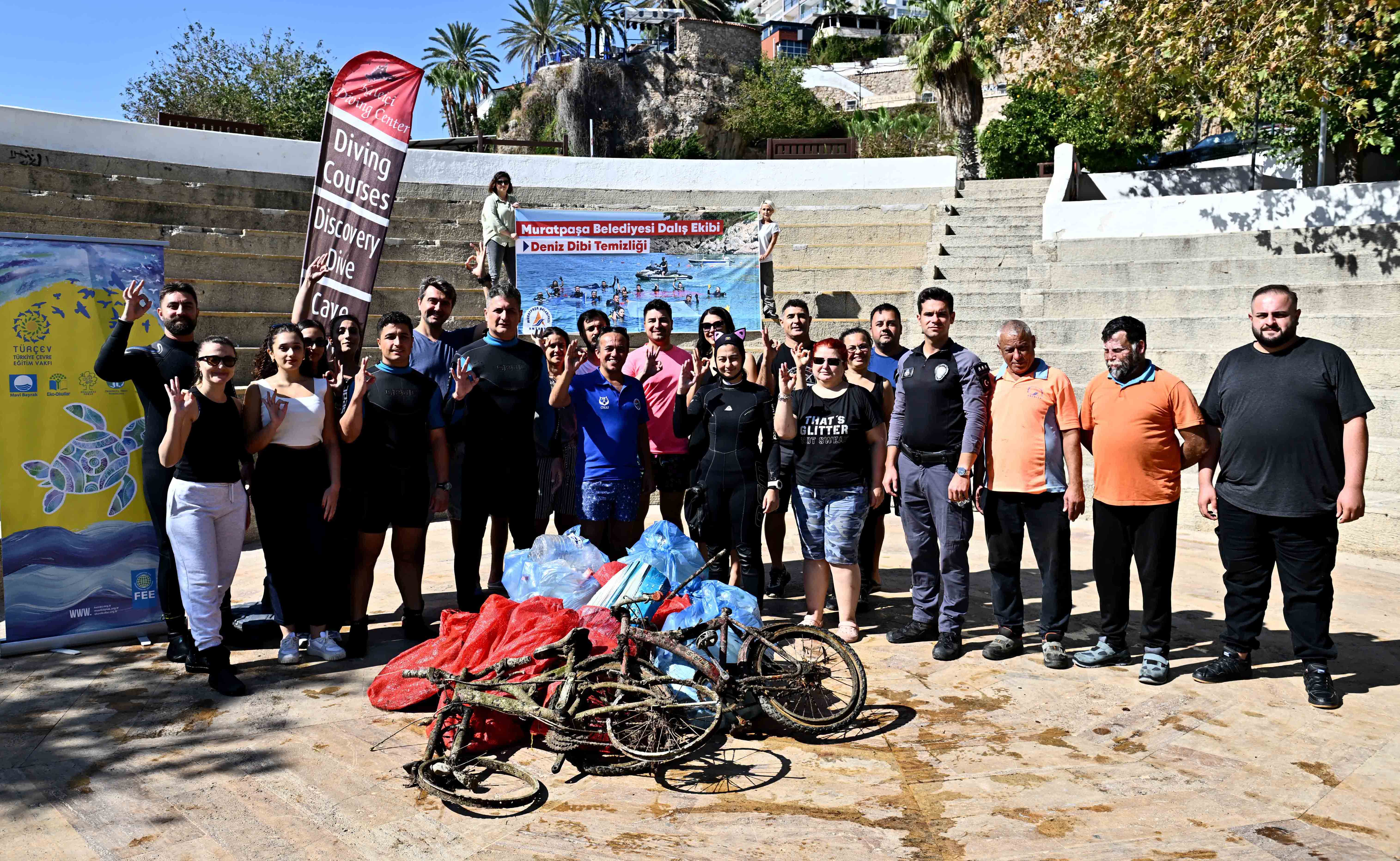 Antalya'nın Muratpaşa ilçesinde yer alan Kaleiçi Yat Limanı'nda, Muratpaşa Belediyesi dalış ekibi tarafından, yoğun geçen yaz sezonunun ardından deniz dibi ve kıyı temizliği yapıldı. Ekip, sabah saatlerinde limanda toplandı. Dalgıçlar ekipman kontrollerinin ardından metrelerce derinliğe gruplar halinde daldı. Yaz sezonu boyunca biriken çöpler denizden tek tek çıkarıldı. Atıklar arasında ambalaj malzemeleri, cam ve plastik şişeler, teneke kutular ve metal parçaların yanı sıra, iki bisiklet de yer aldı.