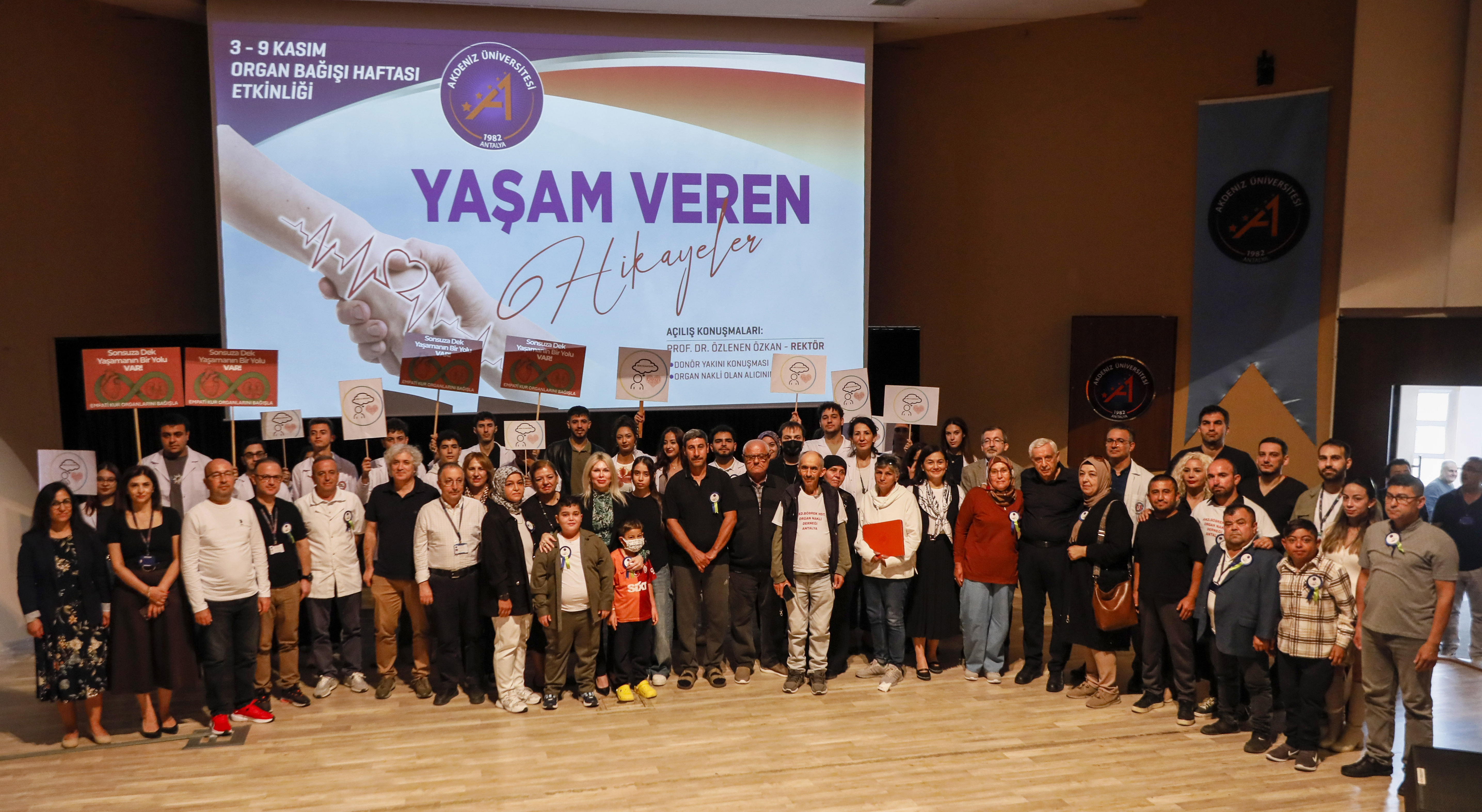 3-9 Kasım Organ Bağışı Haftası dolayısıyla organ bağışına dikkati çekmek ve farkındalığı artırmak amacıyla Akdeniz Üniversitesi (AÜ) tarafından etkinlik düzenlendi. AÜ Atatürk Konferans Salonu'nda yapılan etkinlik öncesinde; AÜ Hastanesi'nde gerçekleştirilen organ nakilleriyle ilgili video gösterildi. Alıcı ve verici ailelerinin bir araya geldiği etkinliğe, Rektör Prof. Dr. Özlenen Özkan, Organ Nakli Enstitü Müdürü ve İleri Sağlık Araştırma Merkezi Müdürü Prof. Dr. Ömer Özkan, AÜ Hastanesi Başhekimi Prof. Dr. Yıldıray Çete, doktorlar, sağlık personeli ve öğrenciler katıldı. Programda konuşan Rektör Özlenen Özkan, "Yaşamın gerçek kahramanları olan donör ailelerimizi ve geleceğin sesi öğrencilerimizi bir araya getirdik. Diyaliz makinesine bağlı yaşamak nasıl bir şey biliyor musunuz? Haftada 3 gün, 4-5 saat boyunca bir makineye bağlı yaşamak. Yiyemezsiniz, içemezsiniz, istediğiniz gibi seyahat edemezsiniz. O makine sizi hayatta tutar ama aynı zamanda hayatınızın da bir parçası haline gelir. İşte bir böbrek nakli, bu döngüyü kırar" dedi.