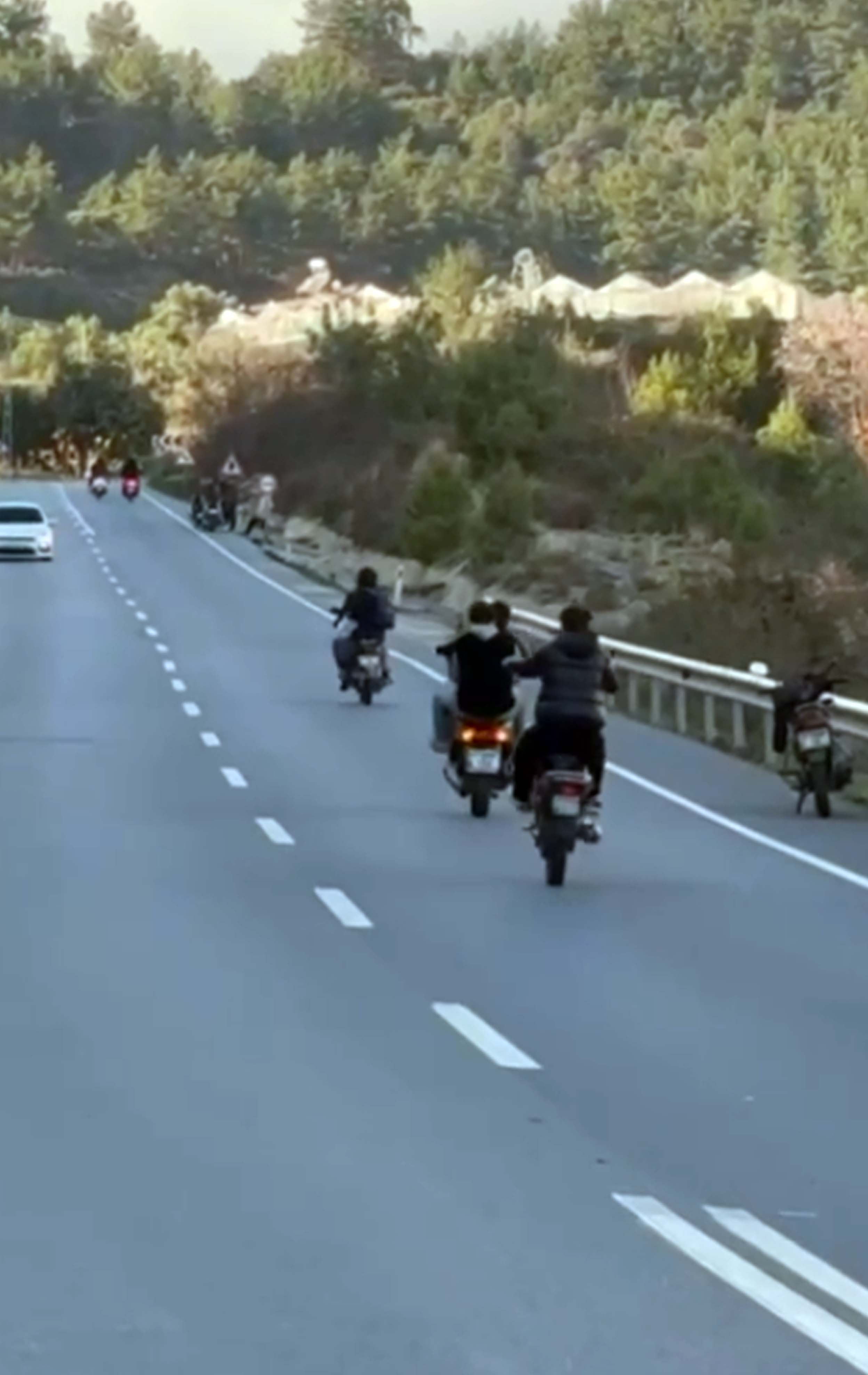 Alanya İlçe Jandarma Komutanlığı ekipleri geçen pazar günü Payallar Mahallesi'nde 2 motosiklet sürücüsünün trafik güvenliğini tehlikeye düşürdüğü anları kamera görüntüsüyle tespit edildi. Jandarma tarafından 2 motosiklet sürücüsü hakkında idari yaptırım ve yasal işlem uygulandı. Yapılan incelemelerde 14 ile 16 yaşındaki sürücülerin, ehliyetsiz araç kullandığı, kask takmadığı, motosikleti kural dışı ve tehlikeli (iki elle tutmadan) kullandığı, araçlarında dikiz aynası bulunmadığı, trafik güvenliği ve düzeni kurallarını ihlal ettiği tespit edildi. Araç sahiplerine ve sürücülere toplam 37 bin 597 lira ceza uygulandı, motosikletler trafikten men edildi.