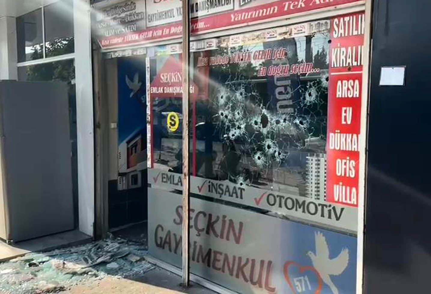 ANTALYA'da gece saatlerinde kimliği belirsiz kişi ya da kişiler tarafından bir emlak ofisine silahlı saldırı düzenlendi.