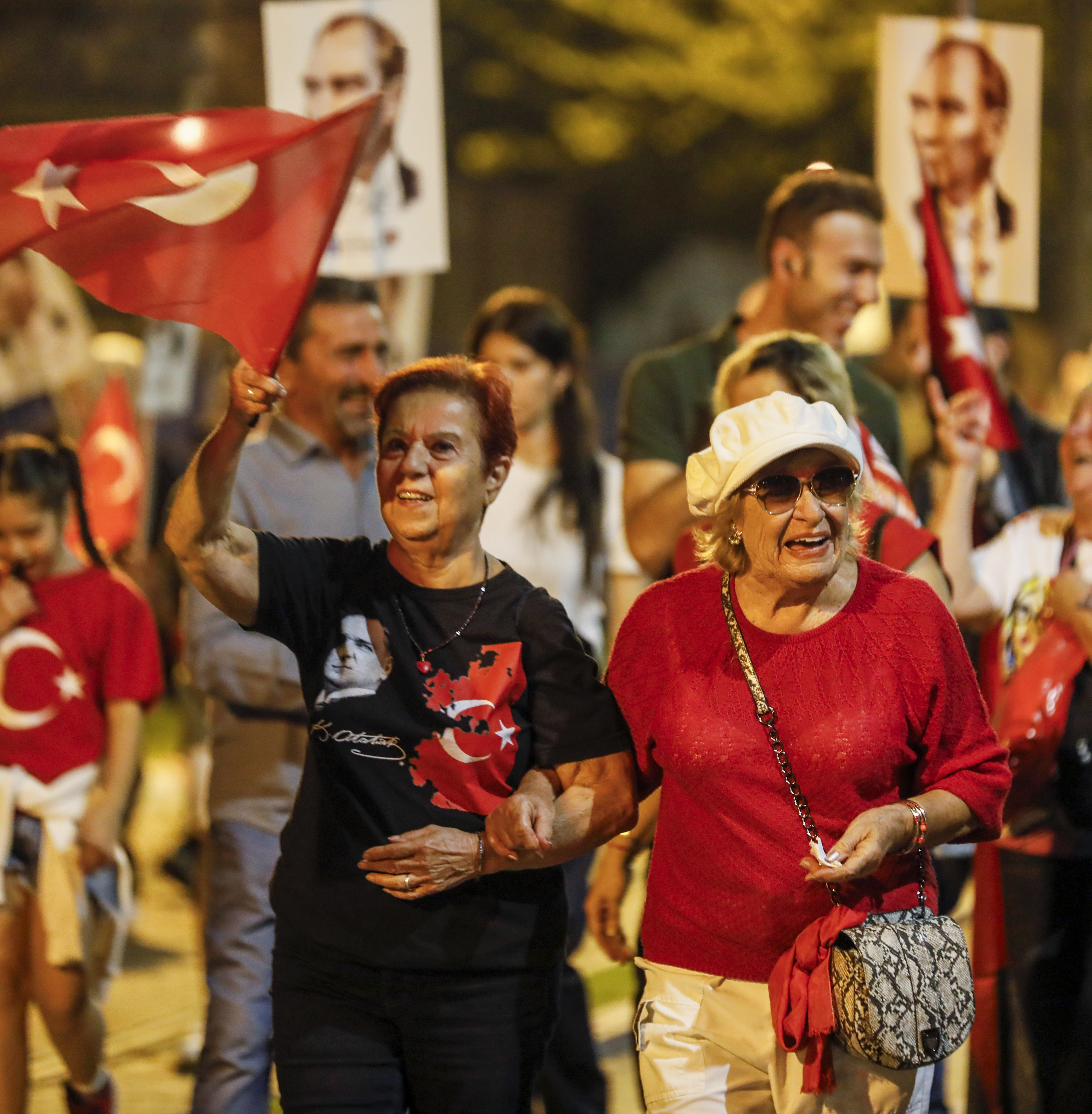 Yürüyüşte öğrenciler tarafından 400 metre uzunluğunda Türk bayrağı taşındı. Sloganların atıldığı, marşların söylendiği Fener Alayı, Cumhuriyet Meydanı’na kadar sürdü.