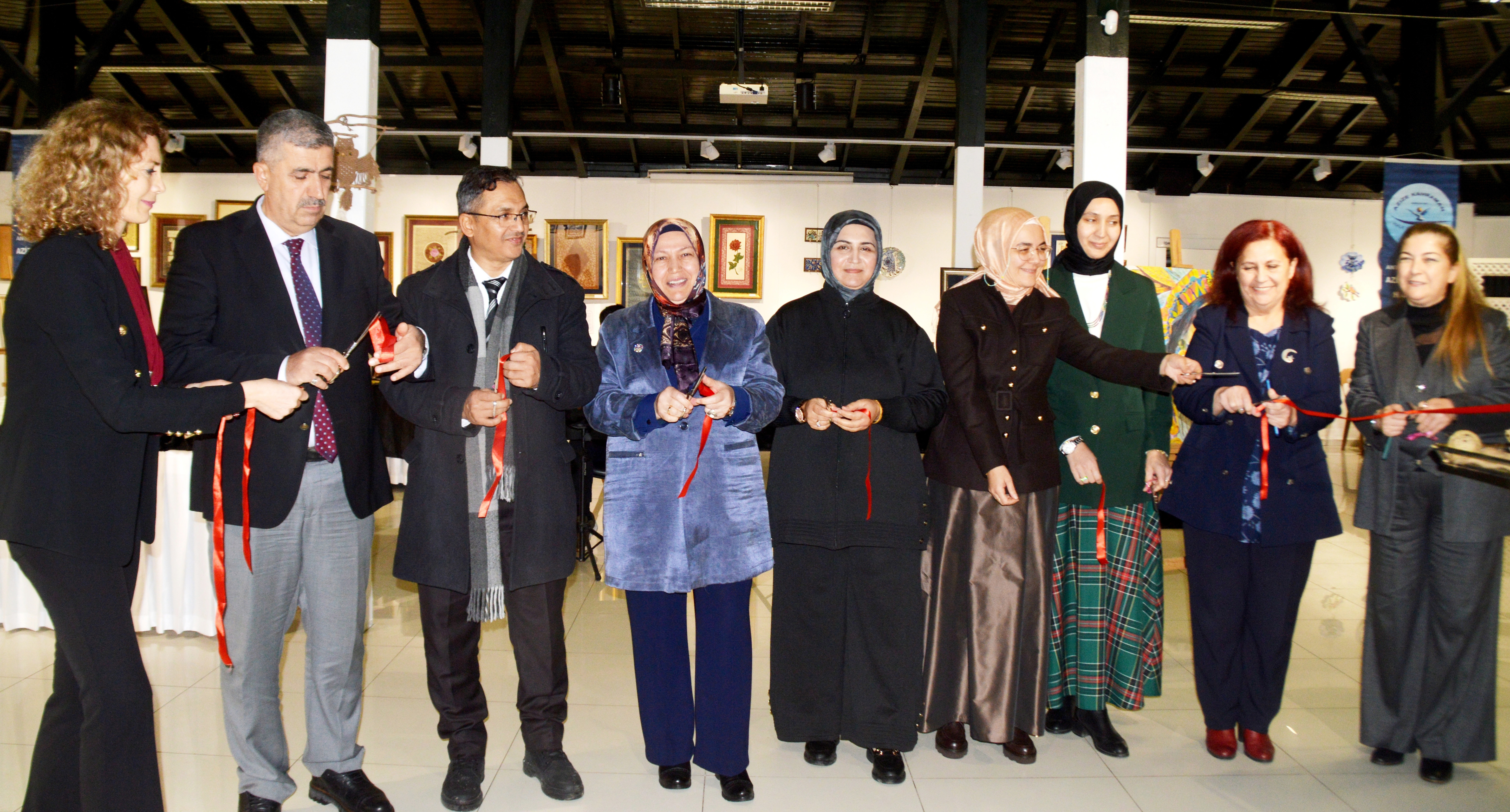 Aydın Kanza Sanat Galerisi'nde açılan serginin kurdelesini Muratpaşa Kaymakamı İhsan Kara'nın eşi Hülya Kara, İl Milli Eğitim Müdürü Mehmet Yasin Eriş'in eşi Şükran Eriş, il ve ilçe müdürleri, Muratpaşa Belediyesi Kültür ve Sosyal İşler Müdürü Gülay Kaplan, AKHEM Müdürü İnci Bacak, müdür yardımcıları Devrim Akbaba, Çiğdem Ötgen, AK Parti Antalya Milletvekili Mustafa Köse'nin eşi Ünzile Köse, AK Parti İl Başkanı Ali Çetin'in eşi Betül Çetin birlikte kesti.