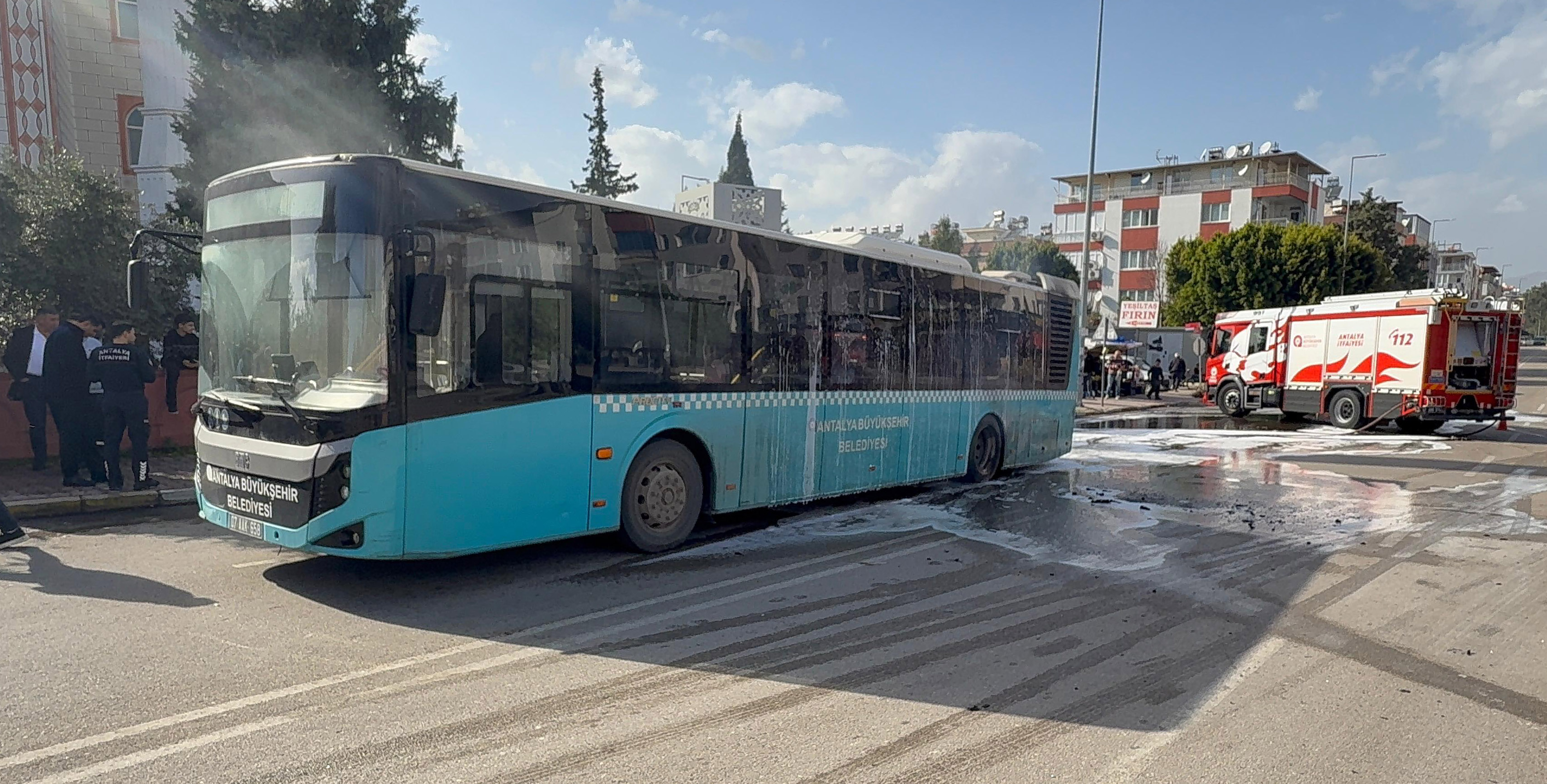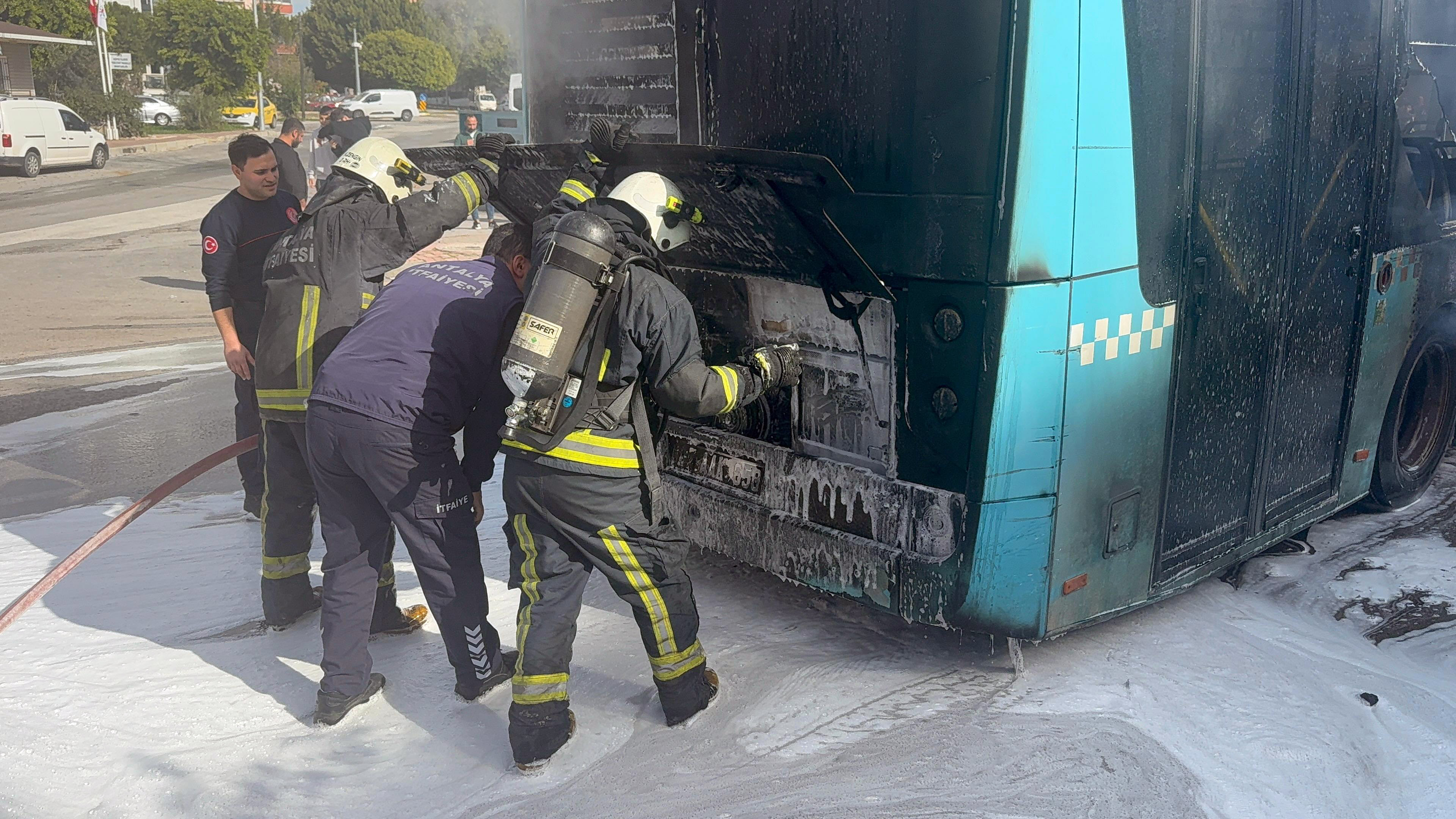 Gülveren Mahallesi Antalyalı Hakkı Çavuş Caddesi’nde bugün saat 14.30 sıralarında Ferit Yıldırım yönetimindeki 07 AAK 658 plakalı Antalya Büyükşehir Belediyesi'ne bağlı halk otobüsü, yolcu almak için durağa yanaştı. Bu sırada otobüsün arka kısmında bulunan motor bölümünden duman yükselmeye başladı. Yangını fark eden sürücü Yıldırım, 3 yolcusuyla araçtan inip yangın tüpüyle alevlere müdahale etmeye çalıştı. İhbar üzerine bölgeye sevk edilen itfaiye ekipleri, alevlere müdahale ederek yangını söndürdü. Yangında otobüste zarar oluştu. Yangın nedeniyle cadde kısa süreliğine trafiğe kapatıldı.