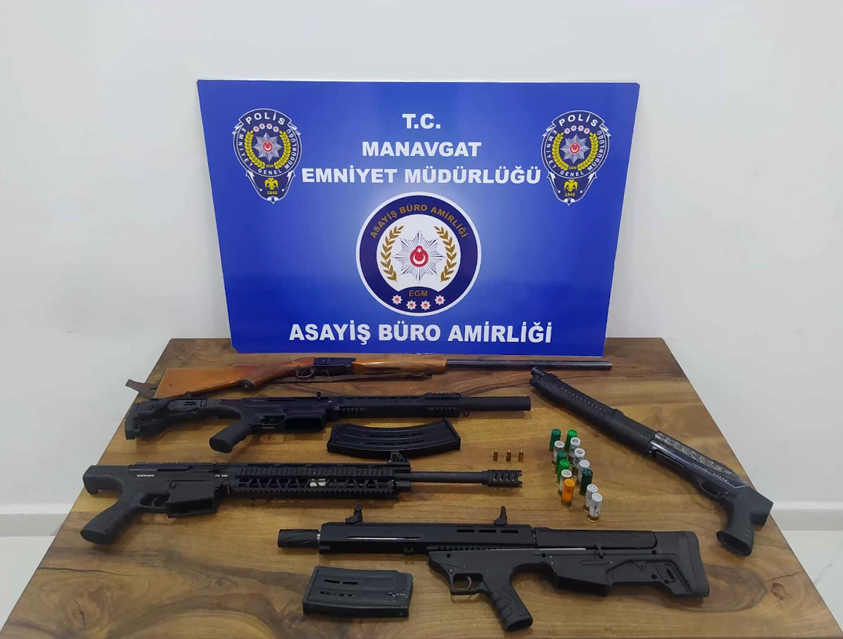 Manavgat Cumhuriyet Başsavcılığı talimatıyla İlçe Emniyet Müdürlüğü Asayiş Büro Amirliği, Kaçakçılık ve Organize Suçlarla Mücadele Büro Amirliği ve Narkotik Büro Amirliği'nden 25 ekip 116 personelin katılımıyla 19 adrese eş zamanlı operasyon yapıldı. Operasyonlarda 4 ruhsatsız av tüfeği, pompalı tüfek, 14 dolu kartuş, 3 tabanca fişeği, 1 kullanımlık sentetik kannabinoid A4 maddesi ve cam aparat ele geçirildi. Operasyonda 6 şüpheli gözaltına alındı.