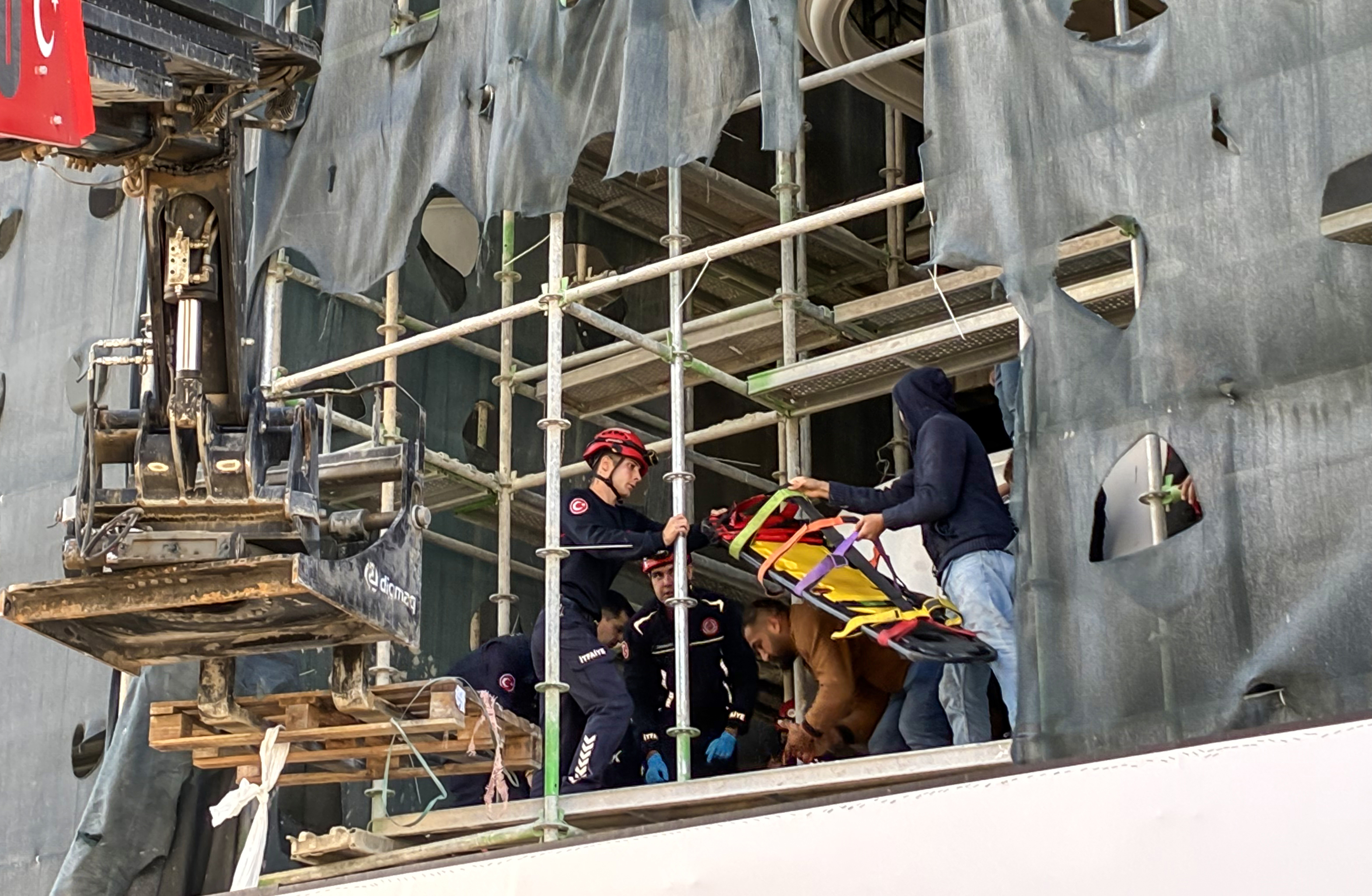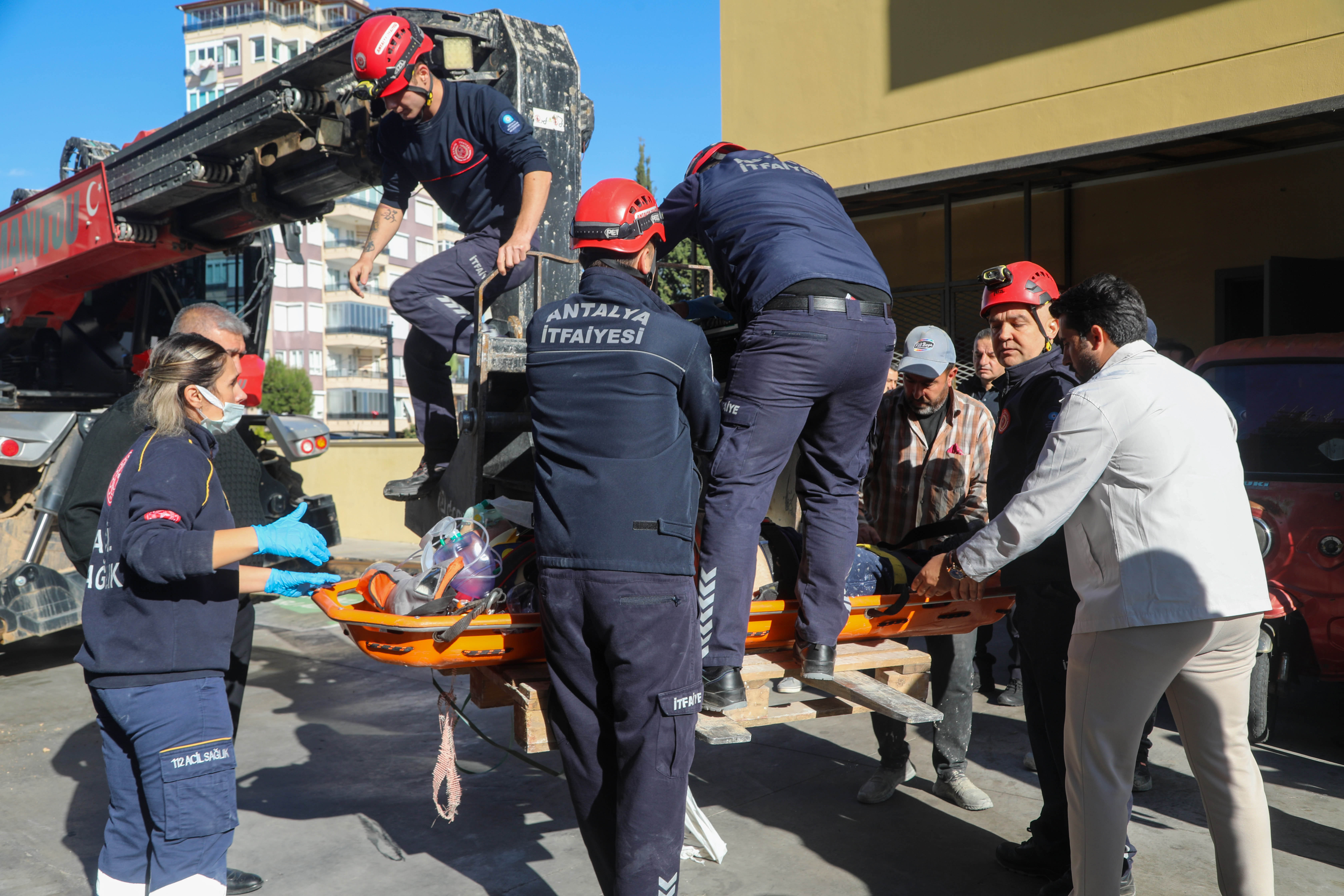 Olay, saat 11.00 sıralarında Konyaaltı ilçesi Altınkum Mahallesi'nde 8 katlı inşaat halindeki bir binada meydana geldi. 5'inci katta iskele üzerinde çalışan Ünal Kayhan, bir anda dengesini kaybetti. İskeleye tutunmaya çalışan Kayhan, 2'nci kata düşüp yaralandı. Bu sırada durumu fark eden mesai arkadaşları Kayhan'ın yardımına koştu. İhbarla adrese sağlık ve itfaiye ekibi sevk edildi. Sağlık ekibi tarafından ilk müdahalesi yapılan Kayhan, sedyeye alındı. Bu sırada iş makinesinin ucuna takılan palet, Kayhan'ın düştüğü yere doğru uzatıldı. Kayhan'ın üzerinde olduğu sedye iş makinesinin kepçesine alınarak, aşağı indirildi. Kayhan, Antalya Eğitim ve Araştırma Hastanesi'ne kaldırılarak tedaviye alındı.