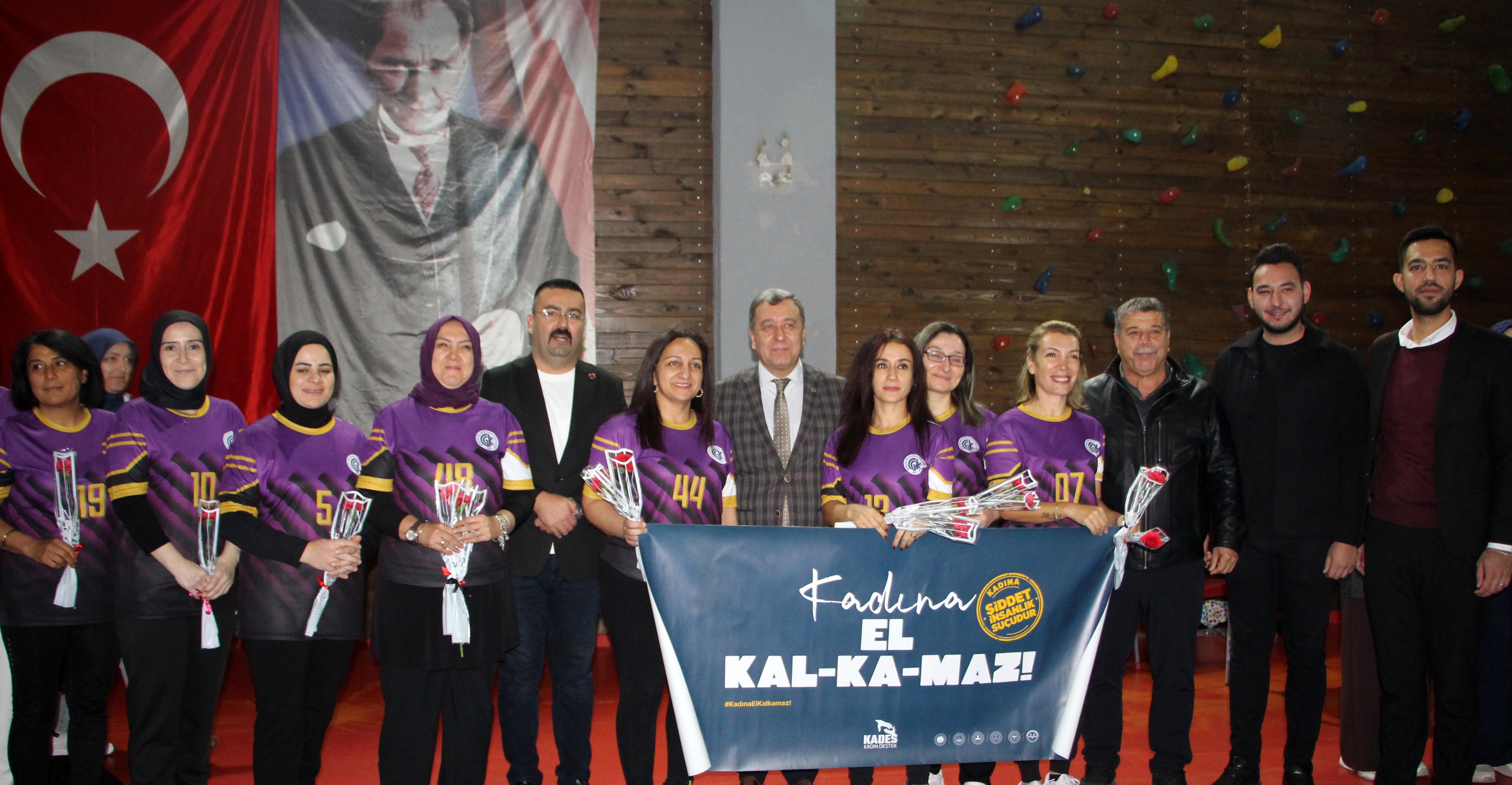 Açılış seremonisinde kadın oyuncularca KADES tarafından Kadına Yönelik Şiddetle Mücadele Projesi kapsamında 'Kadına El Kal-Ka-Maz' afişi açıldı. Kadınlara özel olduğu için turnuva boyunca karşılaşmaların pembe voleybol topuyla oynanacağı belirtildi.
