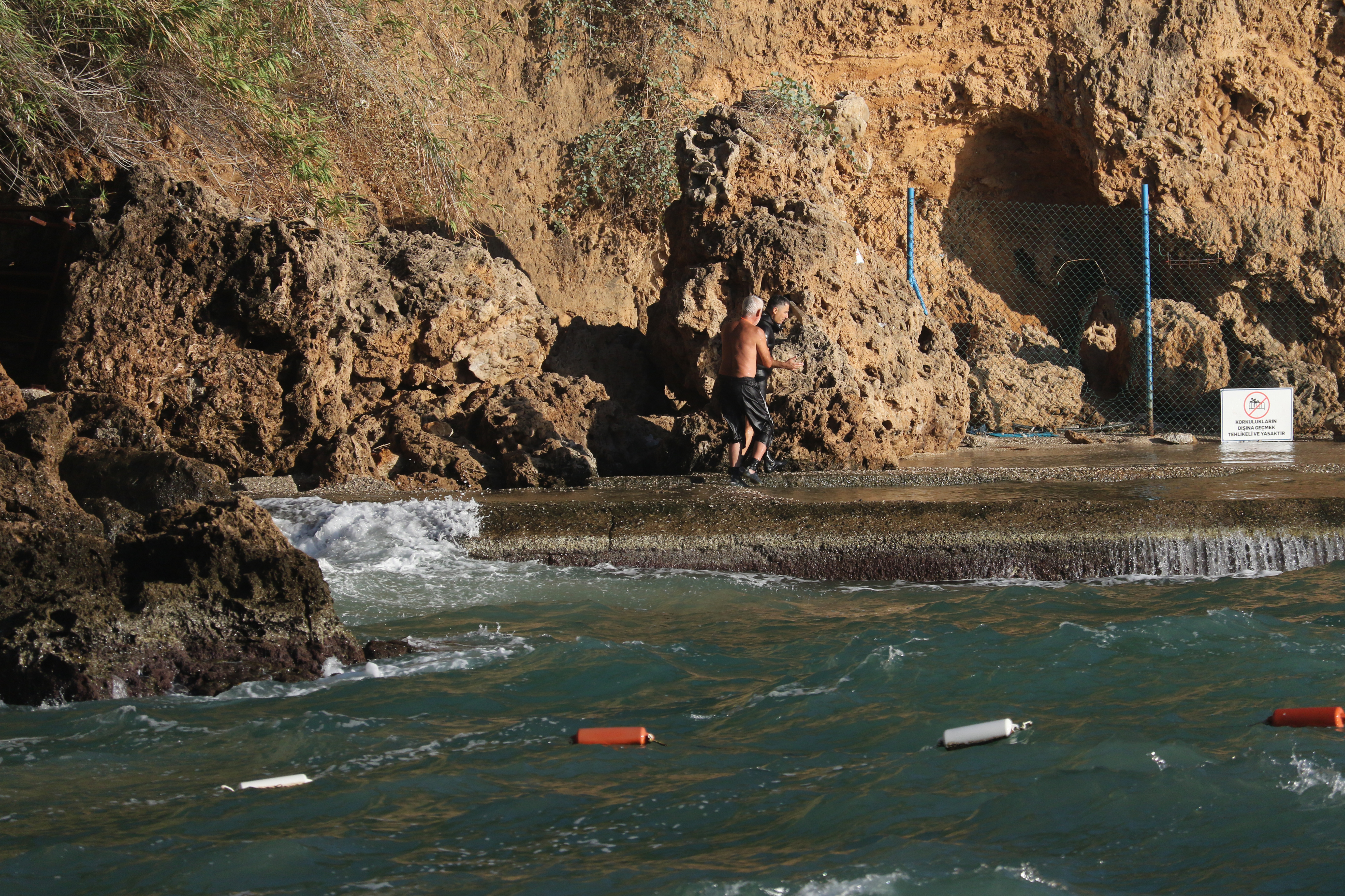 Yaklaşık 45 dakika kayalıklarda mahsur kalan Yusuf Ö., eşyalarını kayalıklarda bırakıp, deniz polisleri gelmeden kısa süre önce suya atladı ve kıyıya yüzmeye başladı. Hemen ardından zodyak botla olay yerine ulaşan deniz polisi karaya çıkmaya çalışan Yusuf Ö.'ye can simidi fırlattı. Yusuf Ö. ise can simidine tutunmak yerine kıyıya doğru yüzmeyi tercih etti. Bu esnada bir deniz polisi suya atlayıp, Yusuf Ö.'ye eşlik etti. Deniz polisi eşliğinde karaya çıkan Yusuf Ö.'nün sağlık durumunun iyi olduğu belirlendi. Ardından Yusuf Ö. olay yerinden uzaklaştı.