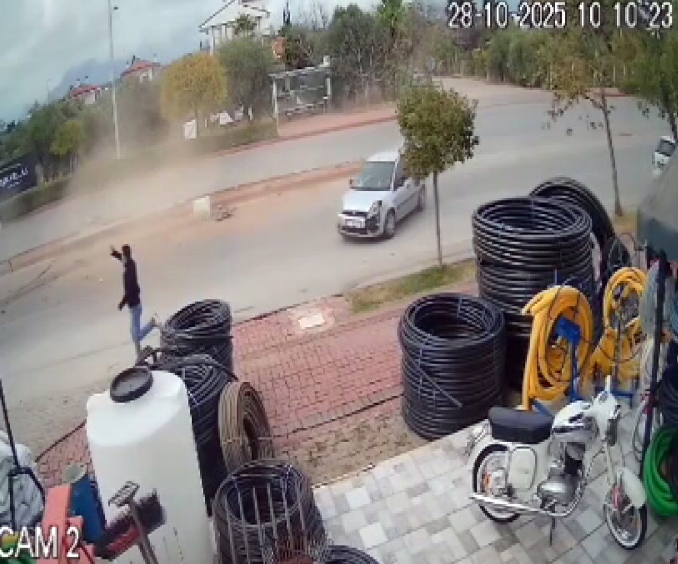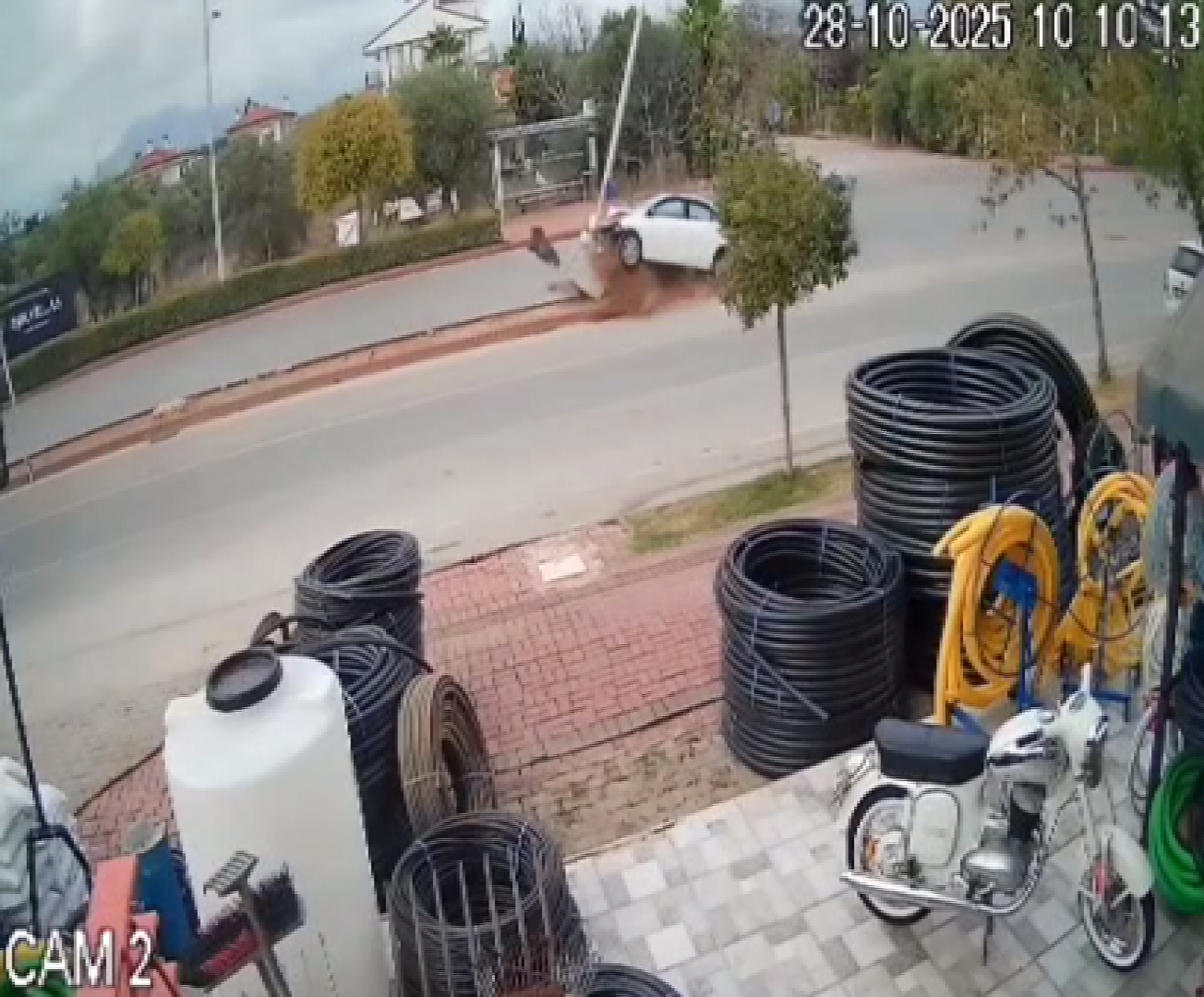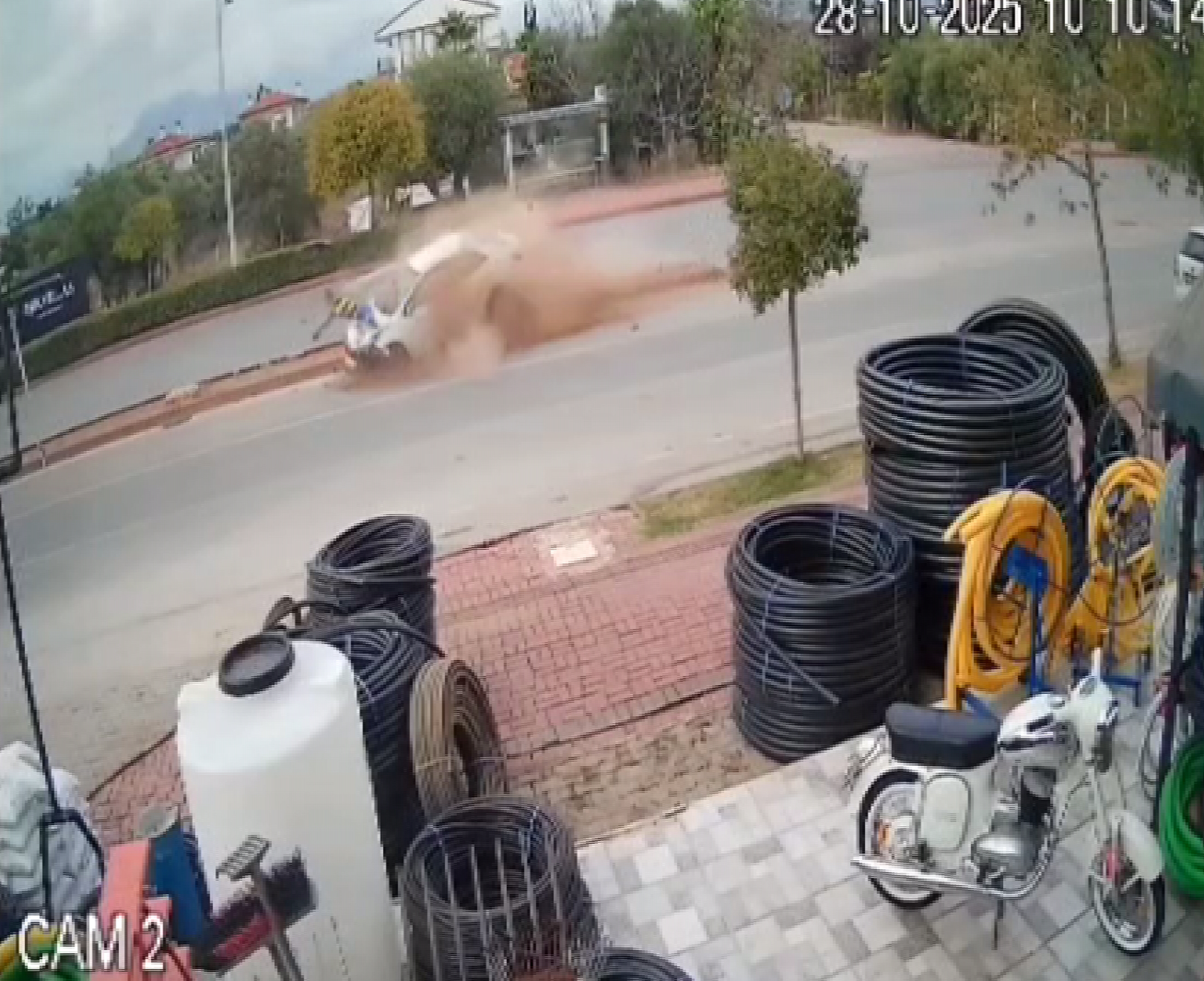 Kaza anı ise cadde üzerinde bulunan iş yerinin güvenlik kamerası tarafından kaydedildi. Kazadaki çarpışmanın şiddeti ve aracın savrulma anları görüntüye yansıdı.