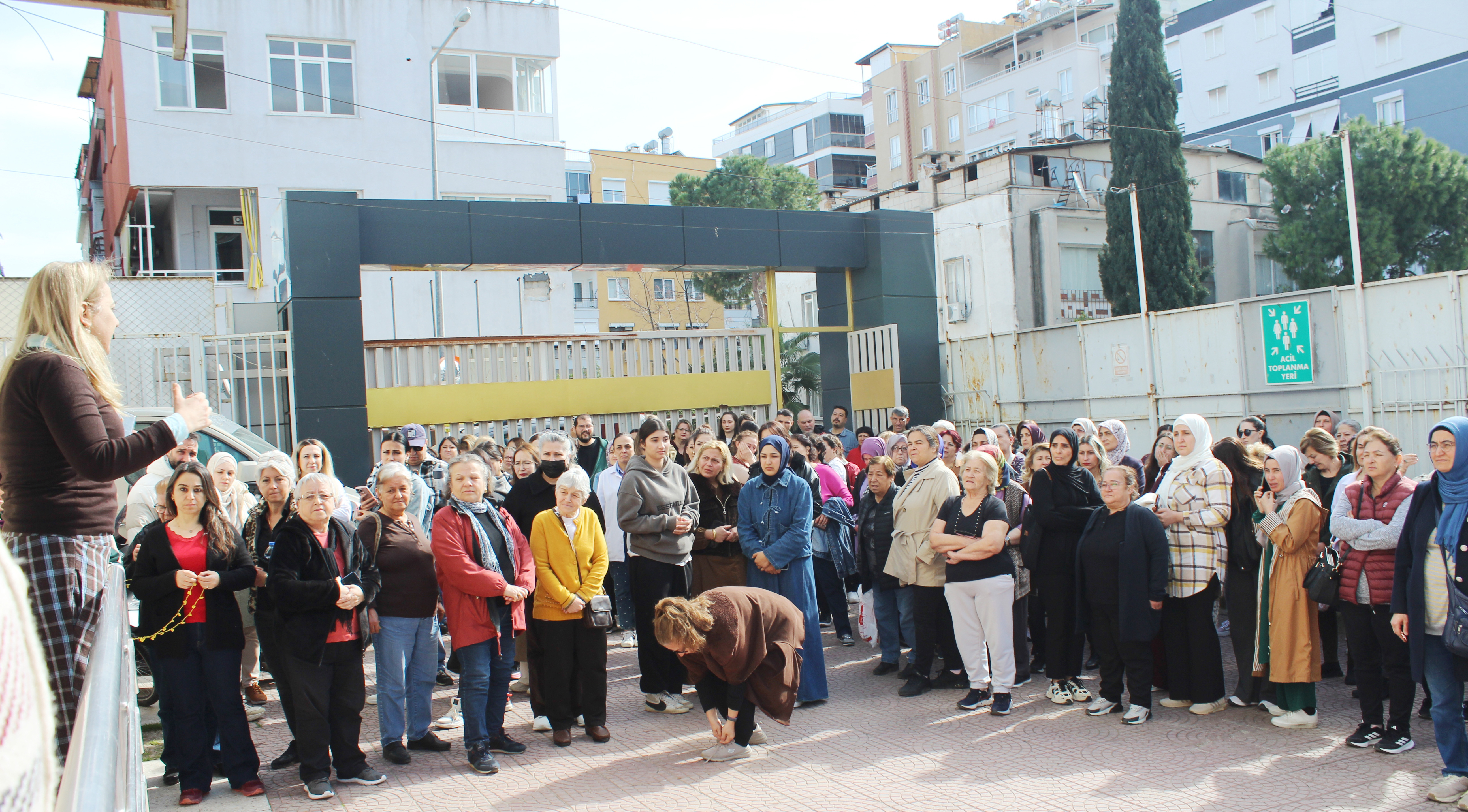 AKHEM Müdür Yardımcısı Meltem Çobanoğlu, senaryo gereği kurum personeli ile kursiyerlere acilen binayı boşaltmaları, toplanma merkezi olan bahçeye çıkmaları çağrısında bulundu. Olası bir afet durumunun yaşandığı varsayılarak personelin, kursiyerlerin tahliye edilmesinin ardından kalabalığa "Panik yapmayın, sakin olun, bu bir tatbikat" denildi, yapılacak konuşmaların, önerilerin dinlenmesi istendi.