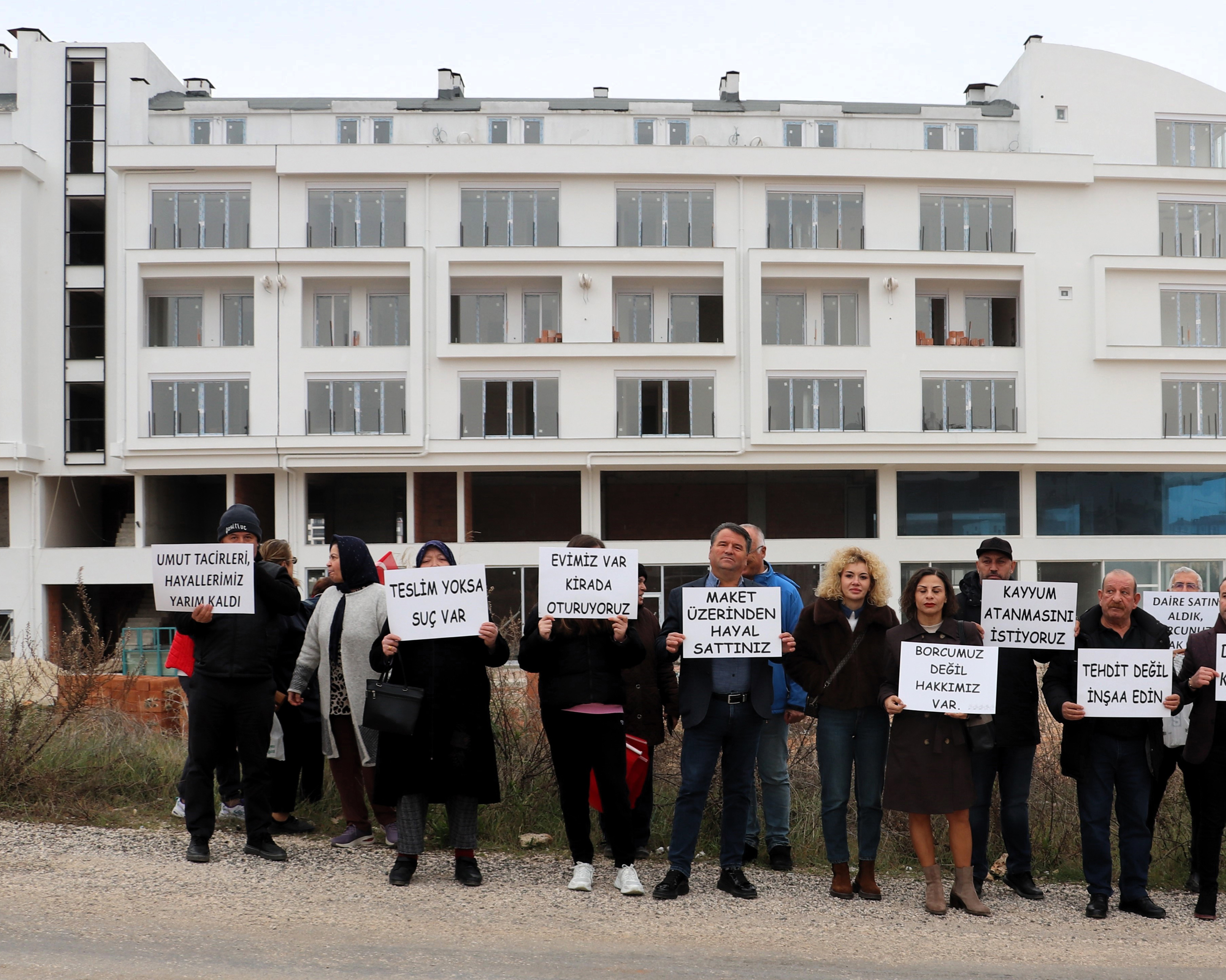 Projeden daire satın alanlardan Habibe Şeker ise hem bireysel alıcıların hem de kooperatif üyelerinin mağdur olduğunu savunarak, “2019 yılında projeden daireler satıldı. 2022 yılında tapularımızı aldık, ancak inşaat belirlenen tarihte teslim edilmedi. Elimde tapu ve sözleşmem var. Dairelerimizi teslim almayı talep ediyoruz" dedi.