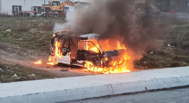 Eşiyle kaynanasına kızdı; Kendi minibüsünü yaktı