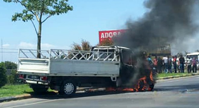 ANTALYA'nın Serik ilçesinde seyir halindeki kamyonet yandı. İtfaiyenin ...