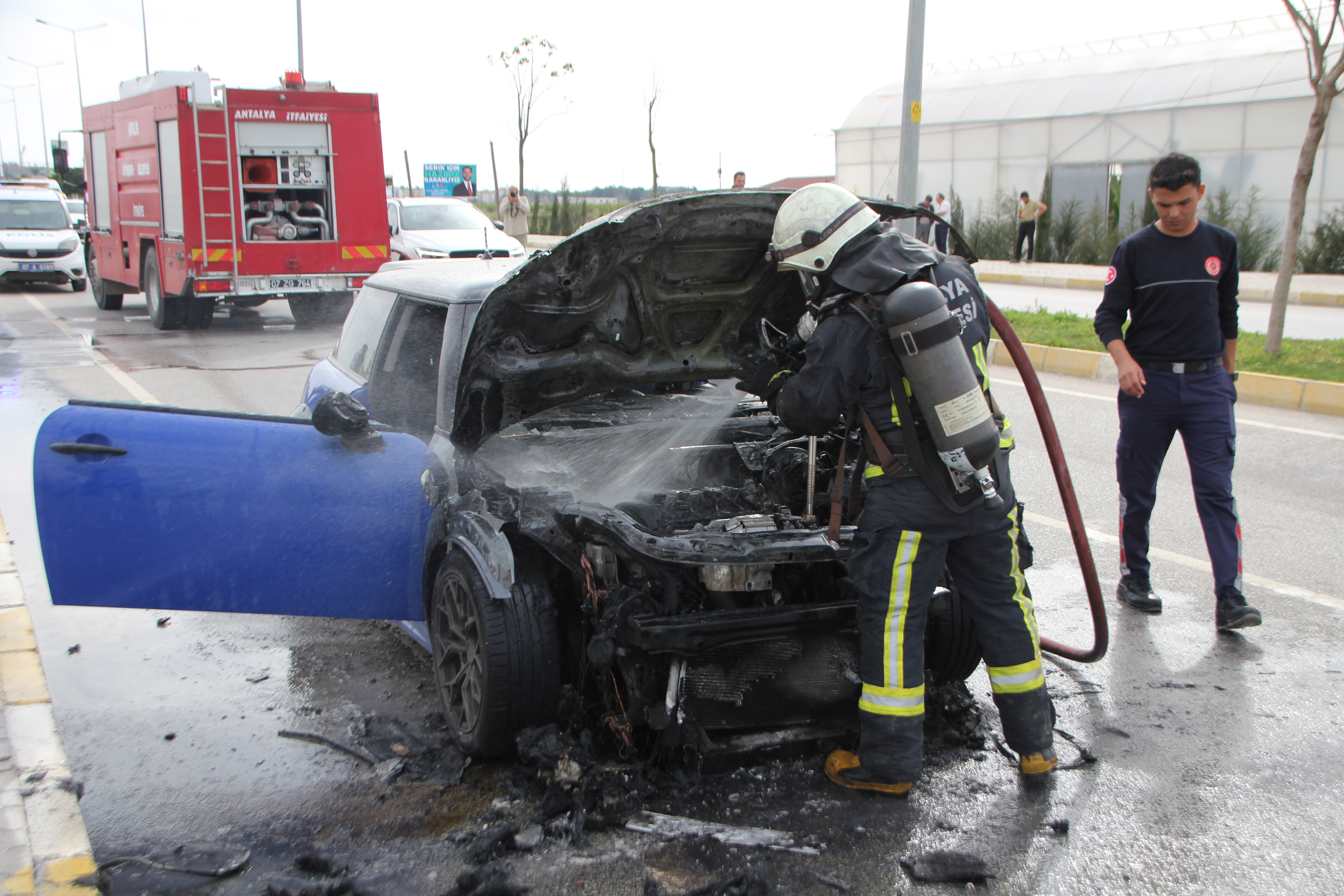 Olay, saat 15.00 sıralarında Serik - Belek turizm yolu Eminceler mevkiinde meydana geldi. Fırat Müjde idaresindeki 34 FPS 488 plakalı otomobilin motor kısmında başlayan yangın büyüdü. Durumu fark eden sürücü aracı yol kenarına durdurdu. İlk müdahale yoldan geçen trafik polis ekiplerince yangın tüpü ile yapıldı. İhbarla olay yerine itfaiye ekipleri yönlendirildi. İtfaiye ekibinin kısa sürede söndürdüğü yangın sonrası otomobilin ön kısmı tamamen yandı. Olayla ilgili polis inceleme başlattı.