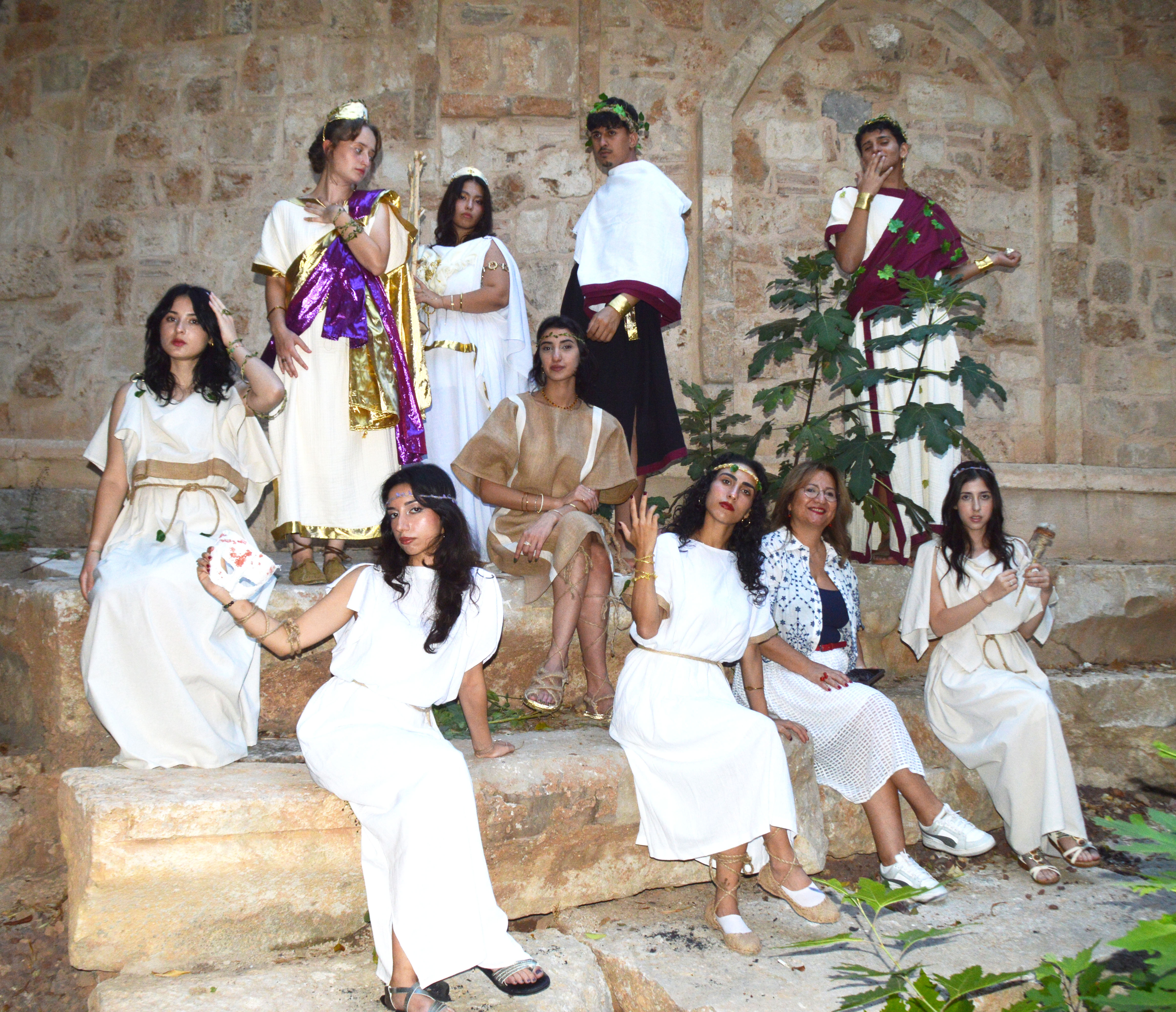 Kaleiçi semtindeki canlı performansta dönemin isimlerinden Baccus'a (Dionisos) Yusuf Deniz Ateş, Juno'ya (Hera) Fatıma Zeynep Arabacı, Minerva'ya (Athena) Ayşegül Özsoy, Mars'a (Ares) Muhammet Karaca, Diana'ya (Artemis) Fatma Oğurtay, Dokumacı Arahne'ye Elif Gül Evlice, Aristophane'ye (Ten Kuş) Gökçe Kırka, halk betimlemelerine ise Buse Balcı, Elif Beyza Şener, İpek Türkmen hayat verdi.