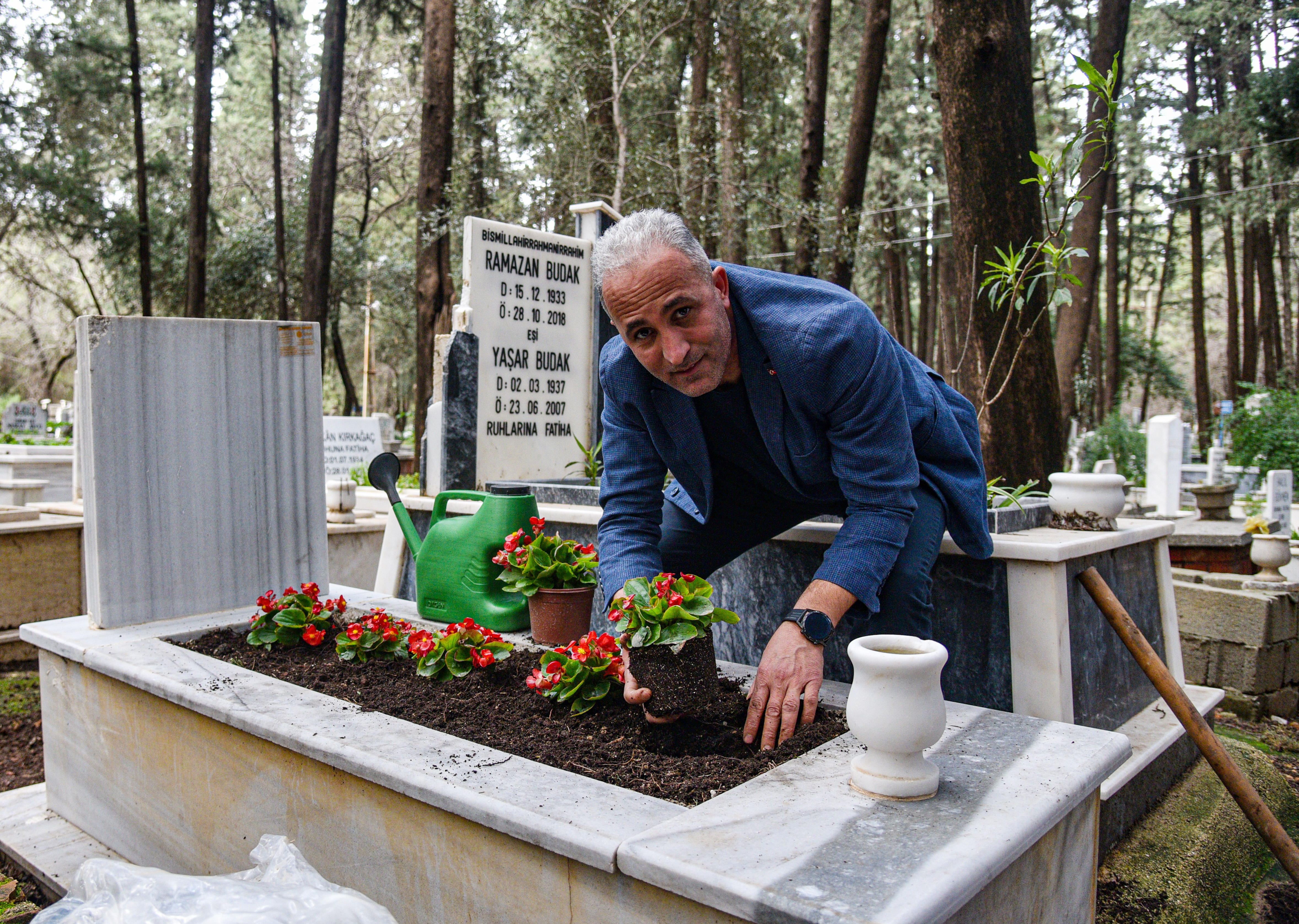 Müşterisinin isteğiyle bir kabrin bakımını yapan Çetin, "Sevgililer Günü'nde mezar bakım için müşterilerin yoğun talebi var. Ramazan Bayramı ve kandil ile ramazan dönemine yönelik talepler çok fazla. Müşteriler için Sevgililer Günü, Anneler Günü gibi özel günlere yönelik mezar bakımı yapıyoruz. Bakım yaptıktan sonra da telefonla son halinin fotoğrafını gönderiyoruz. Mezarlığa gelemeyenler için de görüntülü arama yapıp, kabrin son halini görmelerine yardımcı oluyoruz" dedi.
