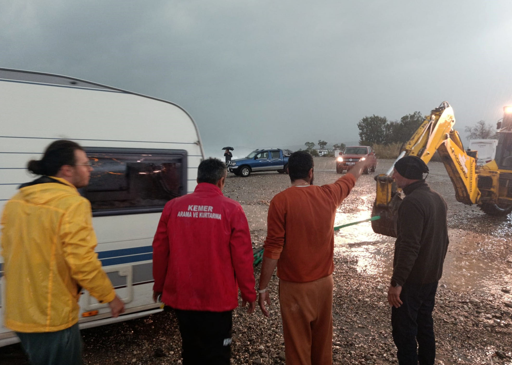 Kemer’de öğle saatlerinde şiddetini artıran sağanak hayatı olumsuz etkiledi. Ağva Deresi'nin denizle buluştuğu Çamyuva sahilindeki 2 karavan denize sürüklendi. Kemer Belediyesi Afet İşleri Müdürlüğü ve Kemer Arama Kurtarma Derneği (KEMKUT) ekipleri, Kemer Belediyesi Fen İşleri Müdürlüğü’ne ait bir kepçe yardımıyla 2 karavanı kıyıya çıkardı. Karavanın birinde mahsur kalan Rus turistler kurtarıldı. Diğer karavanda ise kimse olmadığı görüldü.