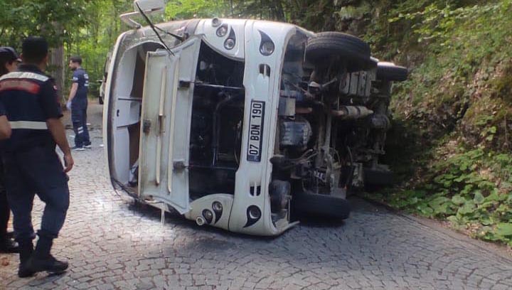 Erol Y. yönetimindeki 07 BDN 190 plakalı karavan, sürücüsünün direksiyon kontrolünü yitirmesi sonucu devrildi. İhbar üzerine bölgeye itfaiye, sağlık ve jandarma ekipleri sevk edildi.